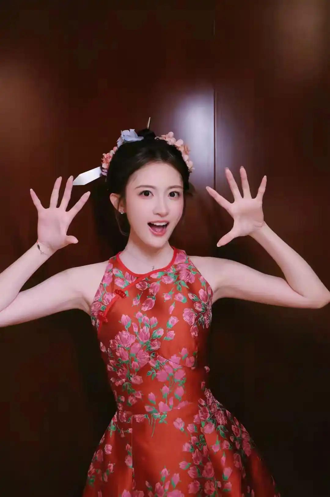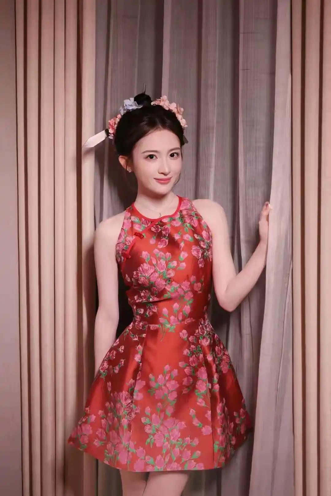你觉得幸福应该是什么样的惊艳的红色裙摆,优雅地舞动在古风建筑前,仿佛穿越时空的精