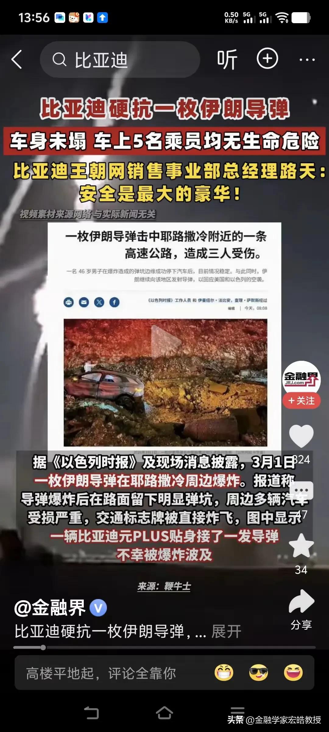 看下图,确实震惊了!比亚迪元PLUS在中东冲突中“一战封神”!伊朗导弹击中以色列特拉维夫的一路段,这辆比亚迪车身冲击变形却骨架坚挺,也没起火,人员全部安全撤离。这场实战验证,比打任何广告都管用。 用实力说话的比亚迪,早已有硬核数据背书:2025年全球销量超300万辆,稳居全球车企销量第五位。 依托过硬的安全与品控,今年在中东实战出圈的加持下,销量与排名势必再上一个新台阶。军工级安全护命,这才是中国车企出海的真实力!