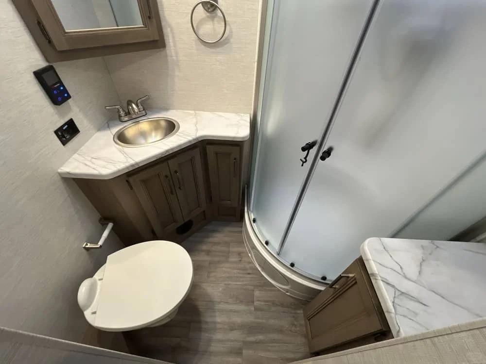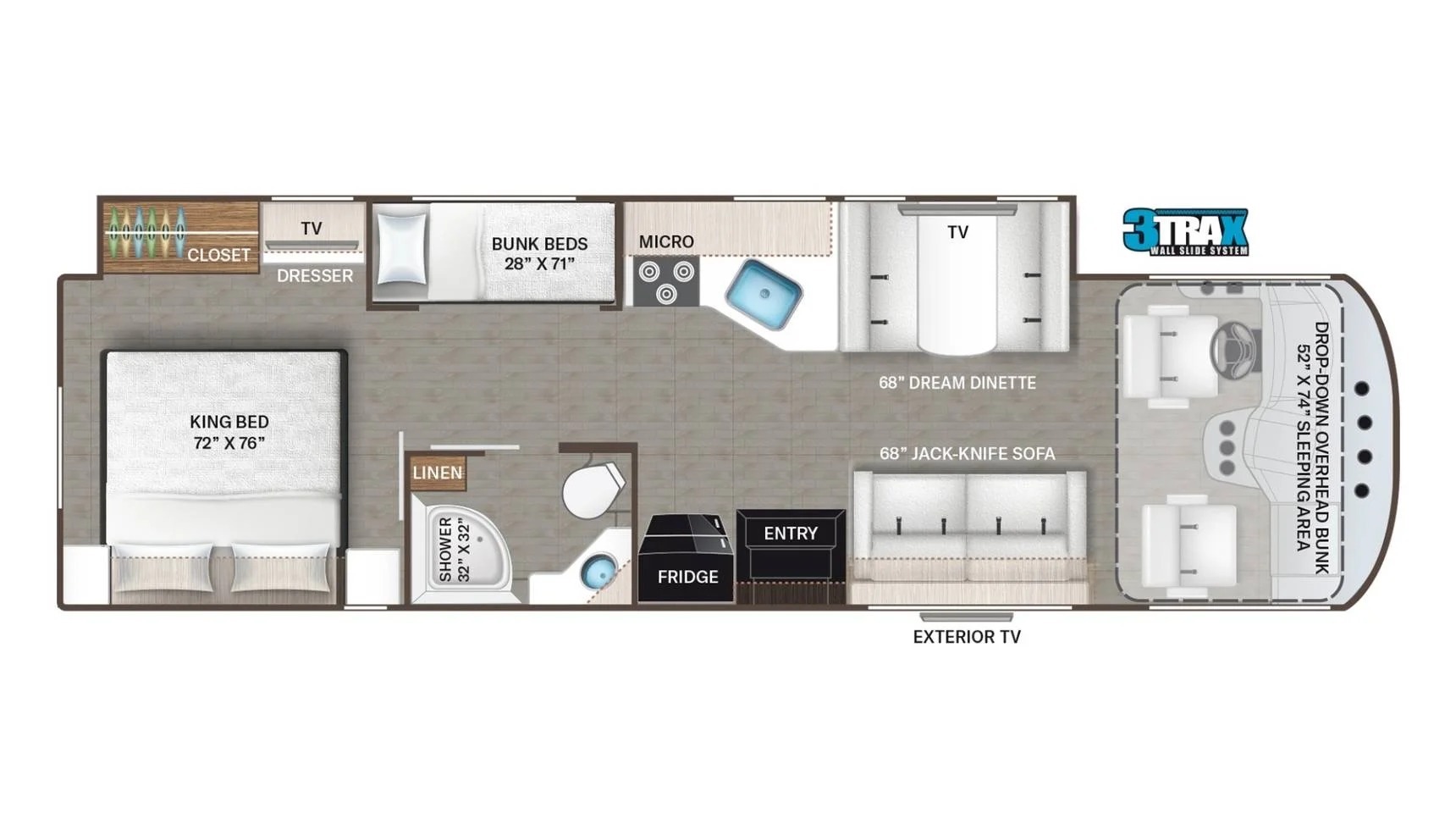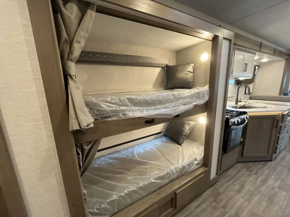 特殊车辆 Freedom Traveler A32,虽然没有顶级coach车那么帅,不过整个左侧车身都可以外拓出来,在车长小于10米的情况下也能提供非常宽敞的居住空间。