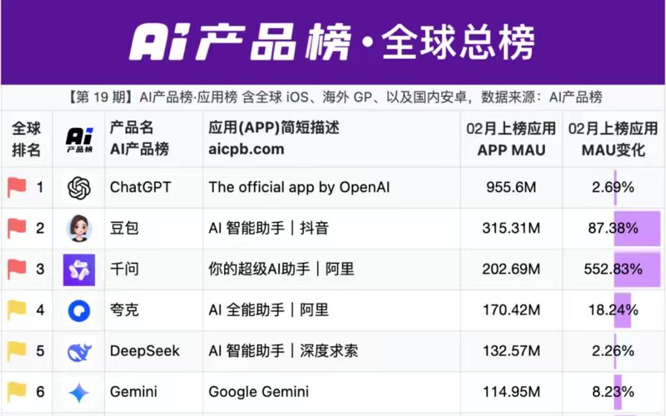 3月3日,权威数据发布,千问以2.03亿月活跻身全球前三,552%增速全球第一,直接碾压Gemini,成为全球增长最猛的AI应用。这不是小幅度进步,是中国AI对海外巨头的全面超越。 回顾AI行业发展,过去两年几乎是海外产品的主场。ChatGPT横空出世,Gemini紧随其后,全球舆论一度认为AI创新只属于西方。但中国科技企业用行动打破偏见:技术我们不缺,落地能力更是遥遥领先。 千问的爆发,核心在于做对了一件事——让AI回归用户,让技术服务生活。春节期间上线的办事功能,看似简单,却精准击中了用户痛点。不用跳转APP、不用复杂操作、不用学习成本,一句话就能完成生活服务,这种体验在全球AI产品中独树一帜。 数据是最好的证明。千问春节活动吸引1.3亿人参与,累计下单超2亿次,相当于全国十分之一的人都在用千问解决日常需求。QuestMobile数据显示,活动两天内,千问日活暴涨940%,从707万直冲7352万,这种爆发力在互联网历史上都极为罕见。更重要的是,热度褪去后,千问依然保持4000万级别的稳定日活,证明增长绝非昙花一现,而是产品力的真实体现。 横向对比全球竞品,Gemini在千问面前完全失去竞争力。用户规模、增长速度、使用粘性、场景丰富度,全面落后。ChatGPT虽然体量领先,但增长见顶,本土化能力薄弱,无法像中国AI一样深度融入民生场景。中国AI的优势,从来不是单点技术突破,而是全链路的体验领先。 从行业格局看,全球AI已经进入中美双线竞争时代。ChatGPT稳居榜首,但千问、豆包双管齐下,不断缩小差距。千问552%的增速,意味着它的增长势能远超所有海外对手。超越Gemini只是开始,直逼ChatGPT的目标已经近在眼前。 中国AI不靠情怀、不靠炒作,只靠用户认可、数据说话,这就是最硬核的实力。