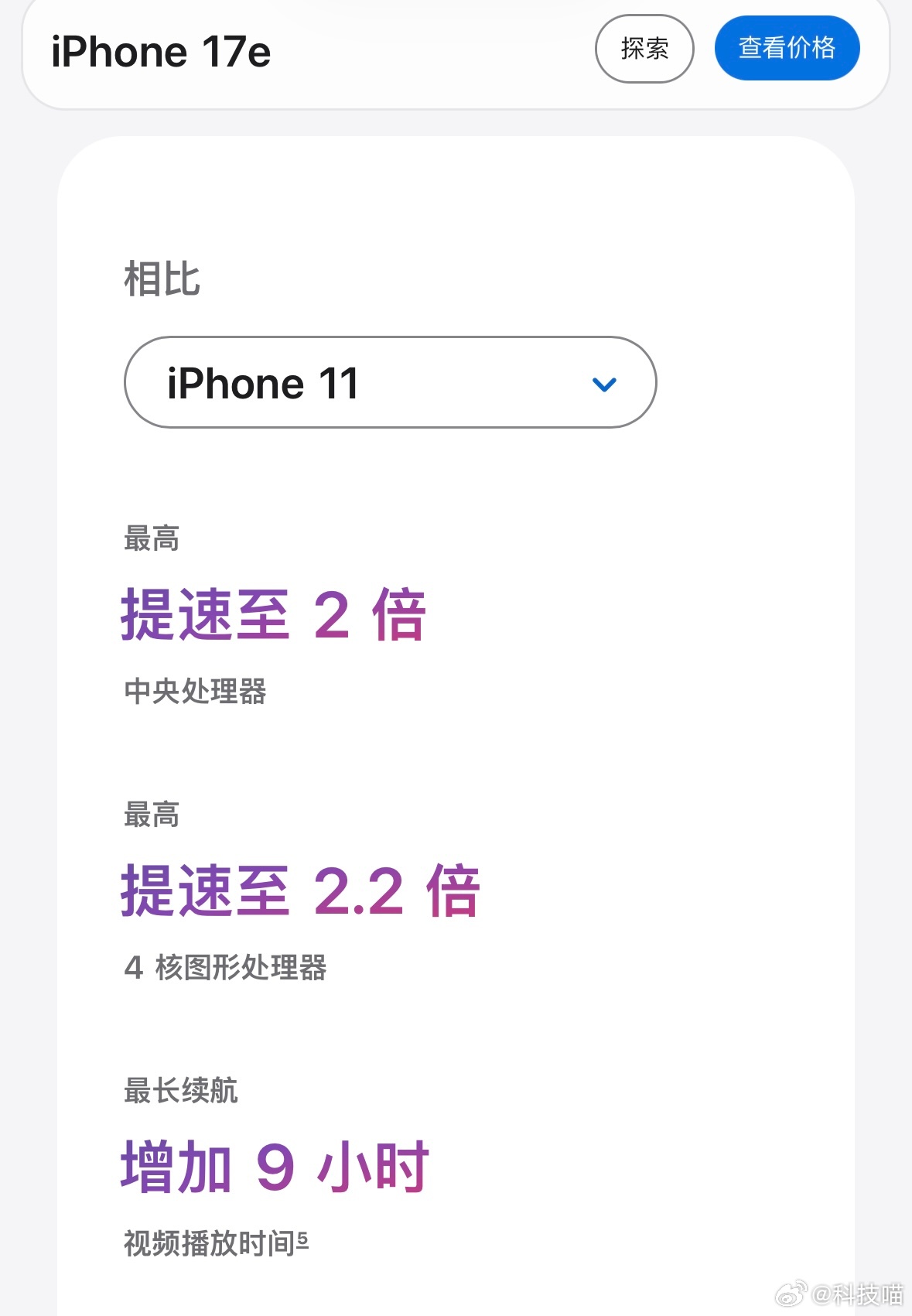 iPhone17e官网对比机型为iPhone11怎么不去对比iPhone 4啊?提升更大