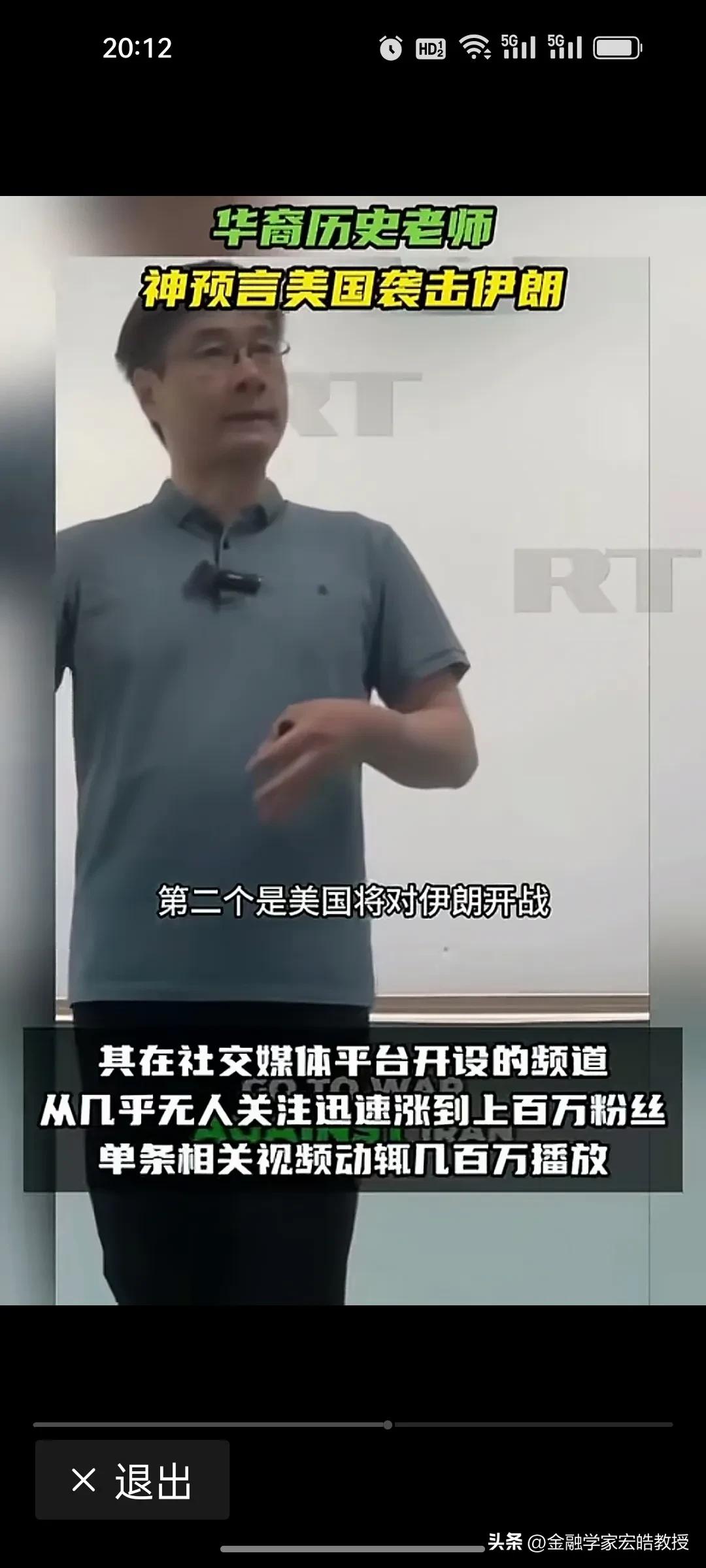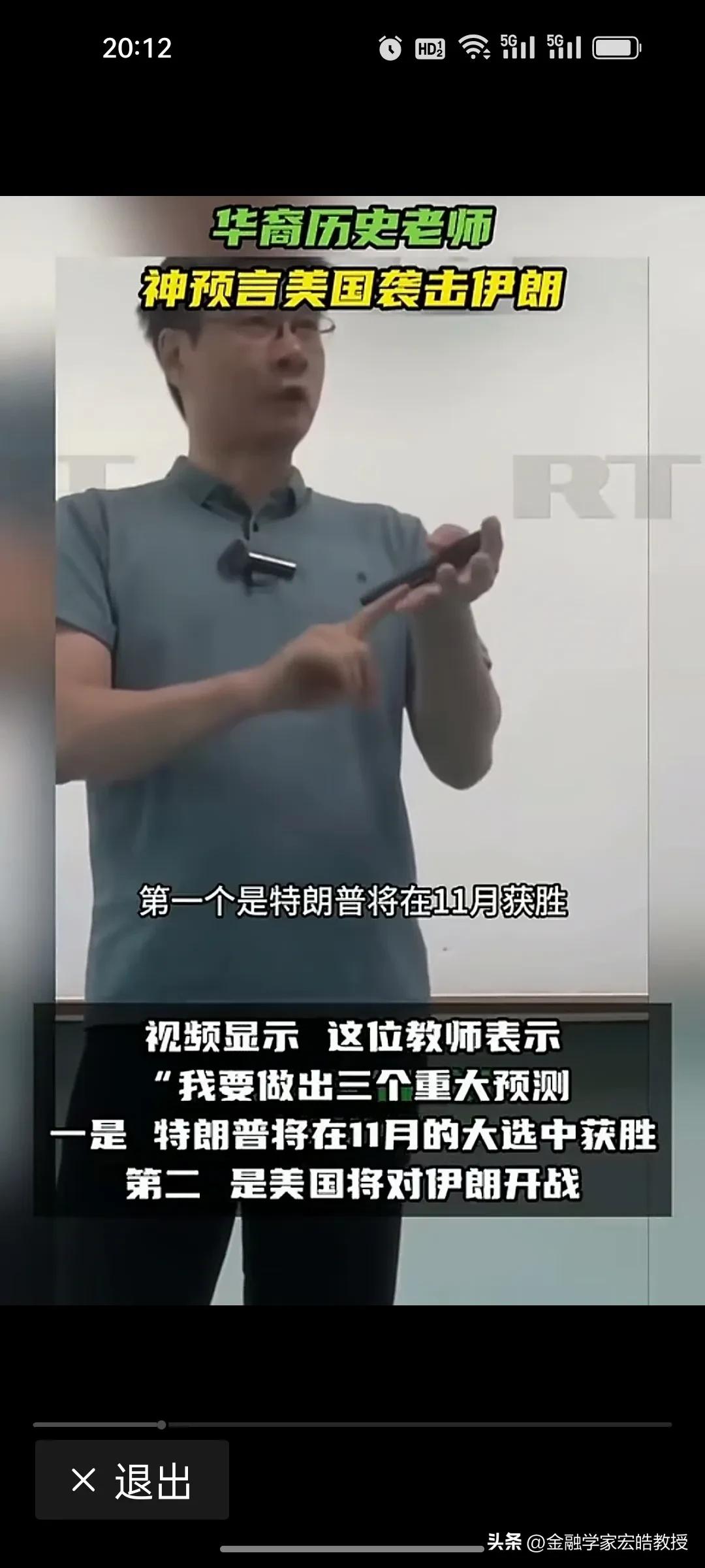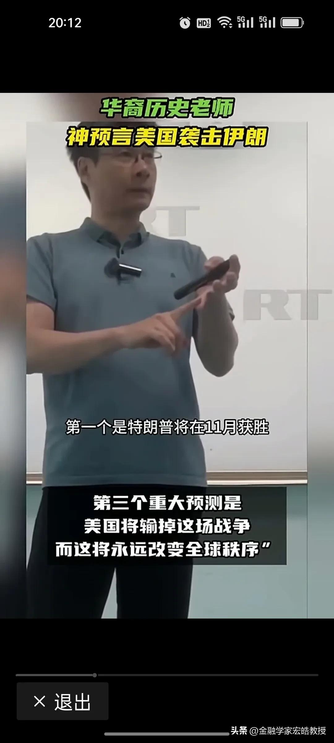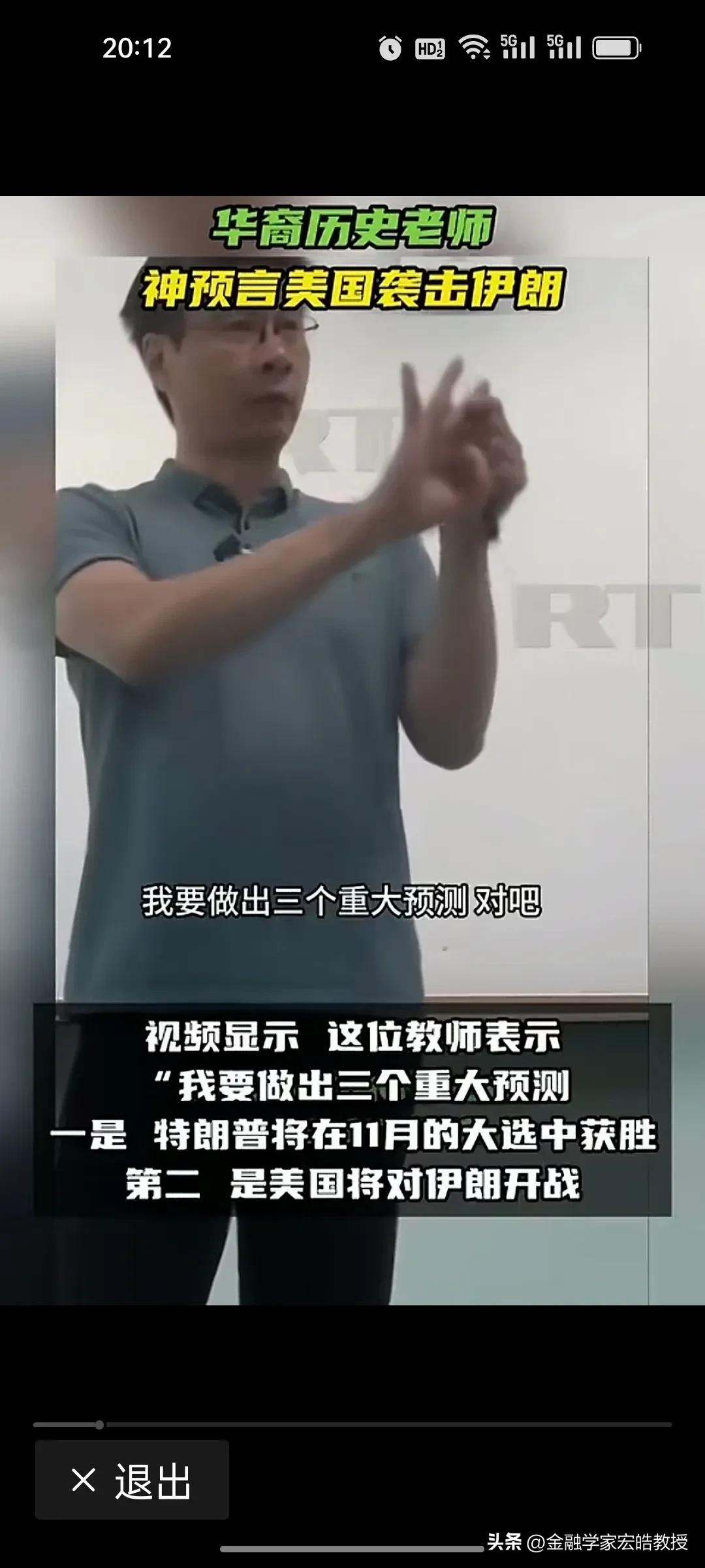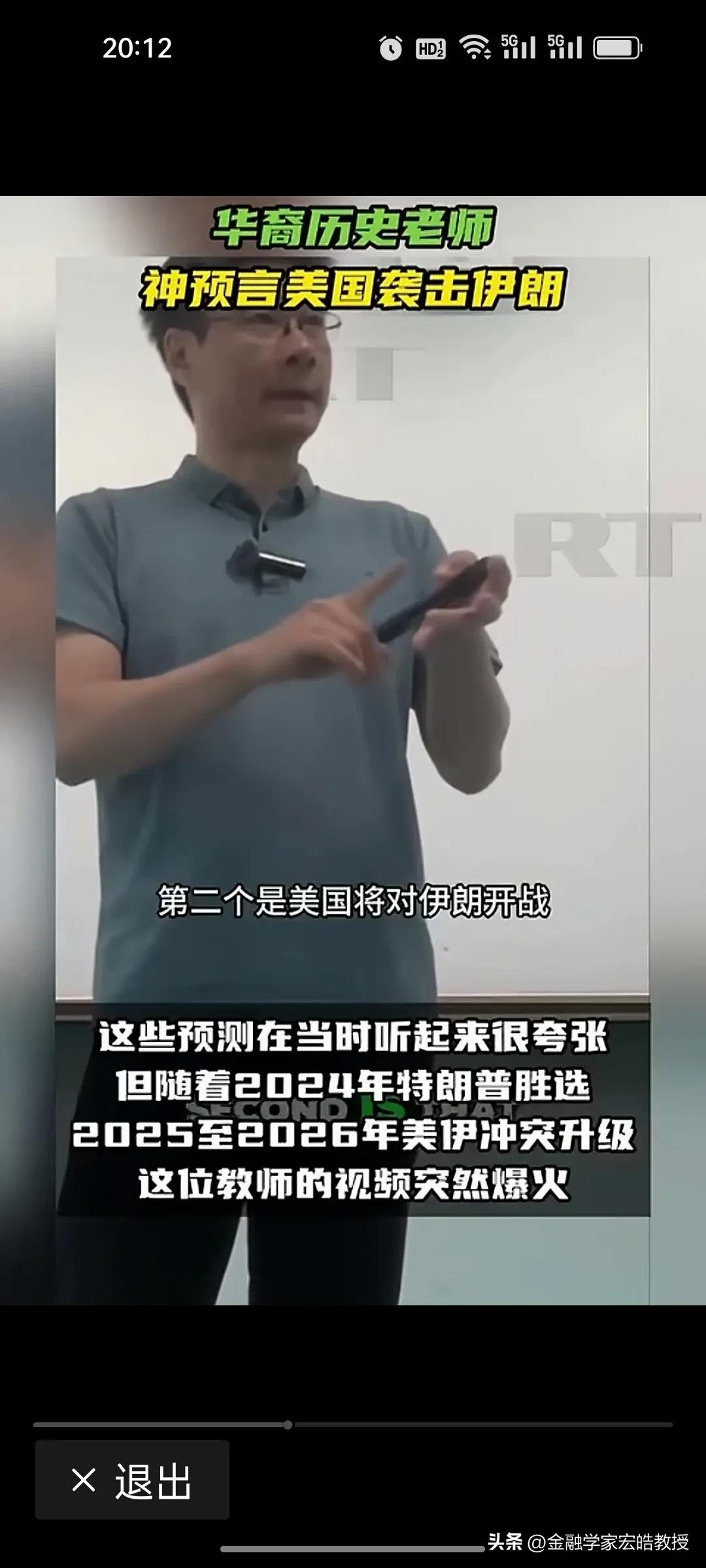 比军事专家还准!华裔历史老师关于美国的三大预言中俩,第三个要改写全球秩序? 看下图,这位被网友称为“高中历史老师里的先知”的华裔教师最近爆火,他在2024年的课堂上抛出三大预言:特朗普11月胜选、美国对伊朗开战、美国输掉战争并重塑全球秩序。 如今前两个预言接连应验,而当初信誓旦旦在媒体上说“美国不敢打伊朗”的军事专家们,早已集体沉默。这位历史老师的判断,以史明鉴,比很多所谓“专业分析”更戳中本质。 现在就看第三个预言能否命中——如果美国真在中东泥潭里栽跟头(虽然很多人现在不信),整个世界格局都要被重写,这位老师也就“一战封神”了。很多媒体绝对会聘请他做时事评论员。民间还是有高手啊!