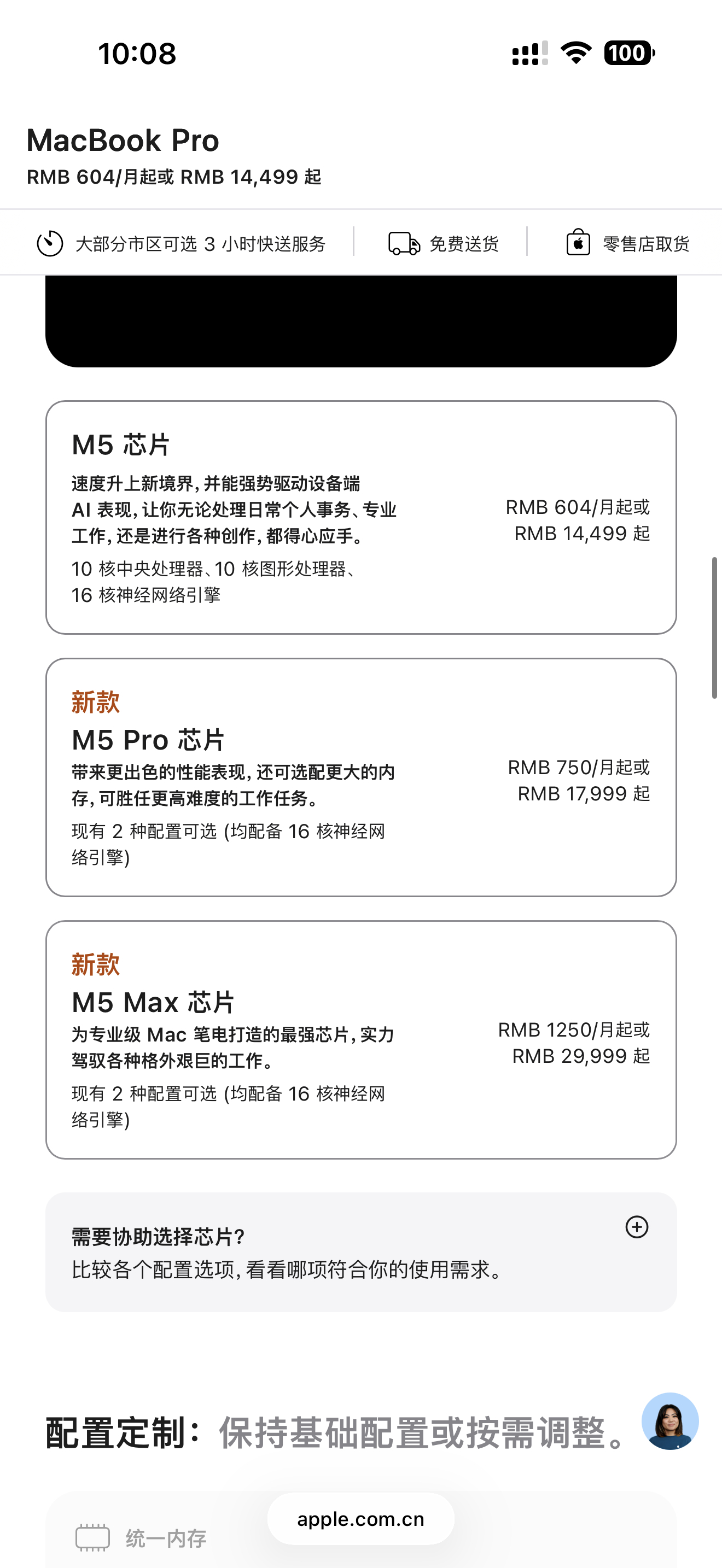 Mac book Pro (M5 Pro和M5 Max)两个芯片配置都来了,又是晚上悄悄上架的我的最新款M5版本的Pro,不是最新的了
