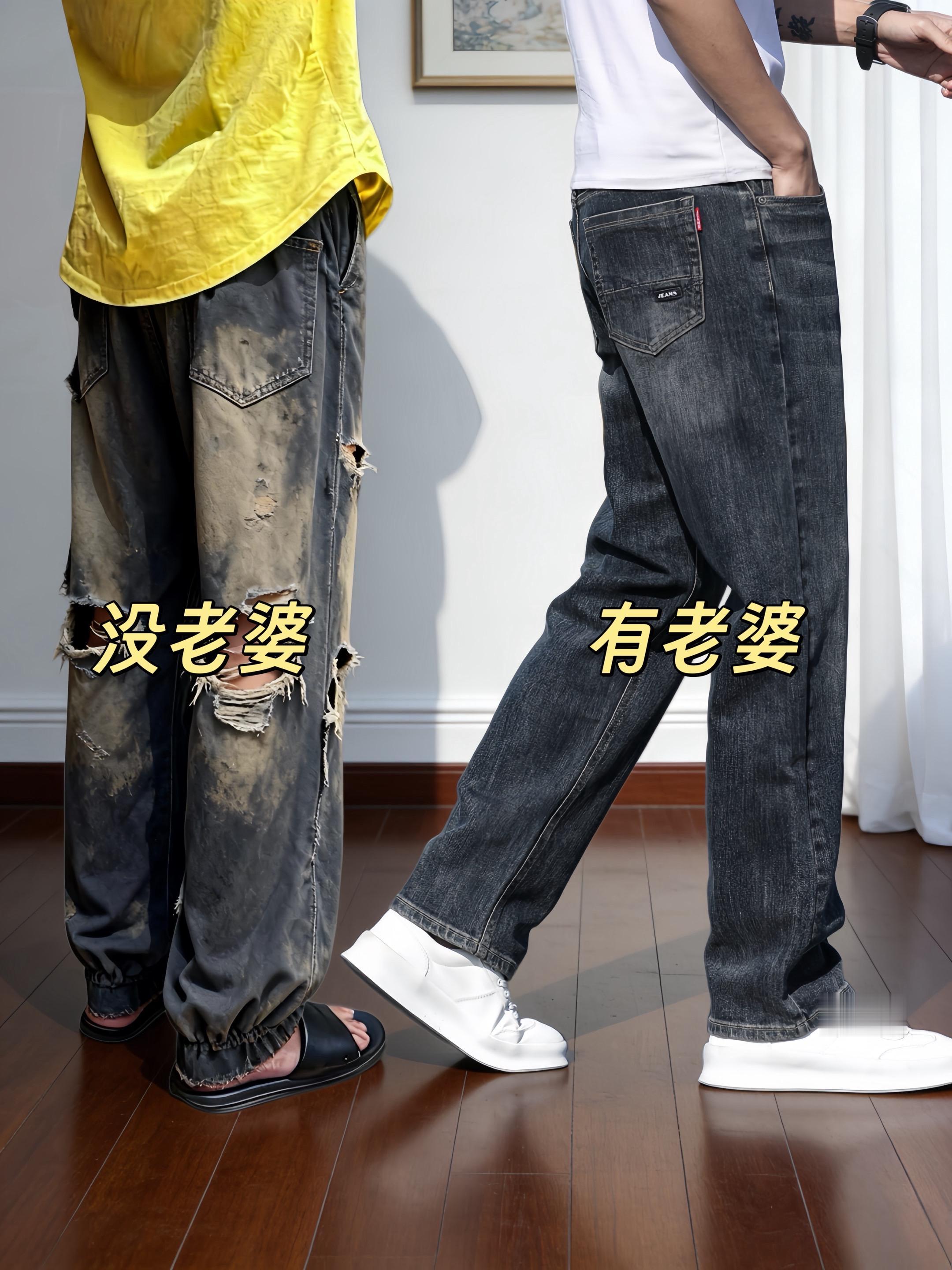 好裤推荐 阔腿裤男牛仔 牛仔裤 直筒牛仔裤 男装裤子
