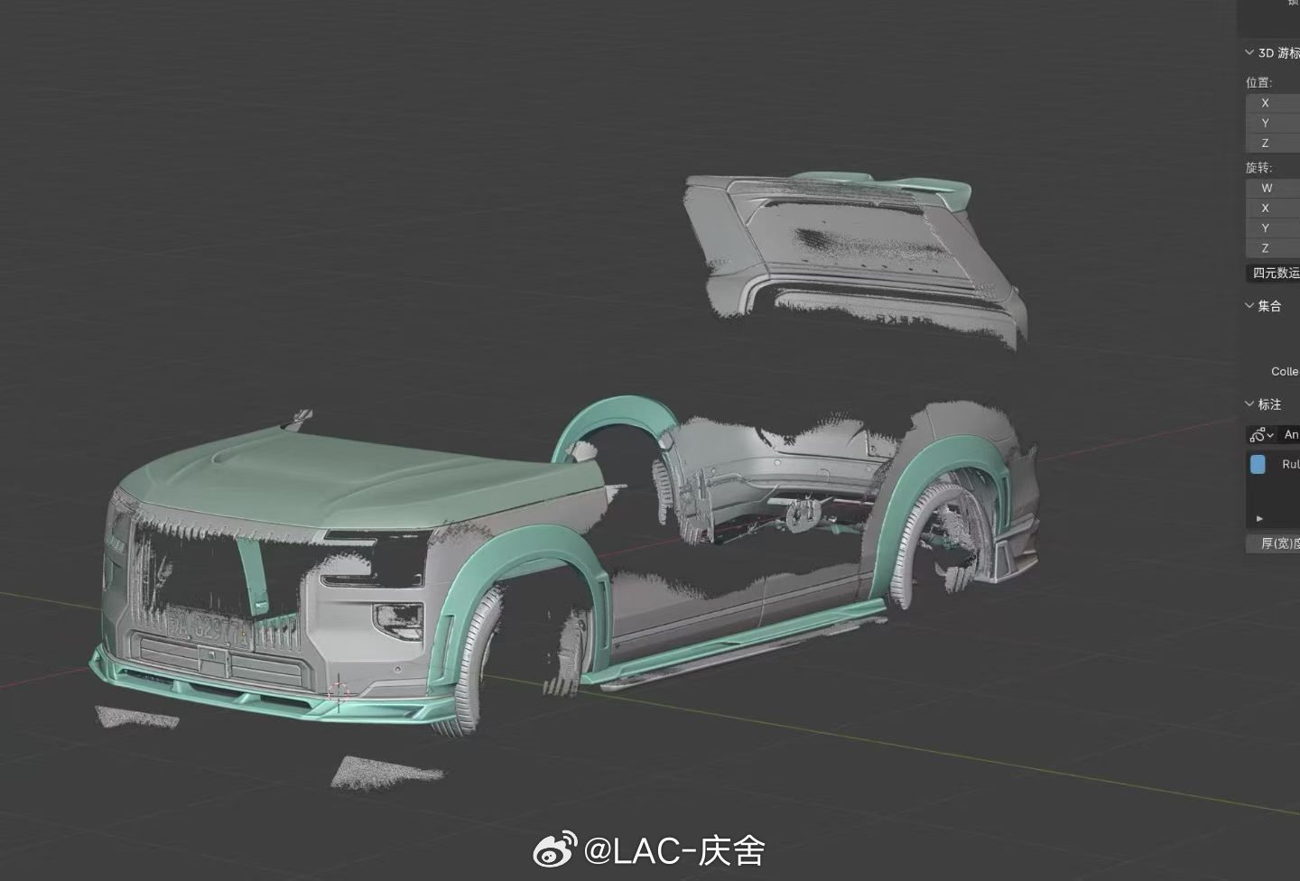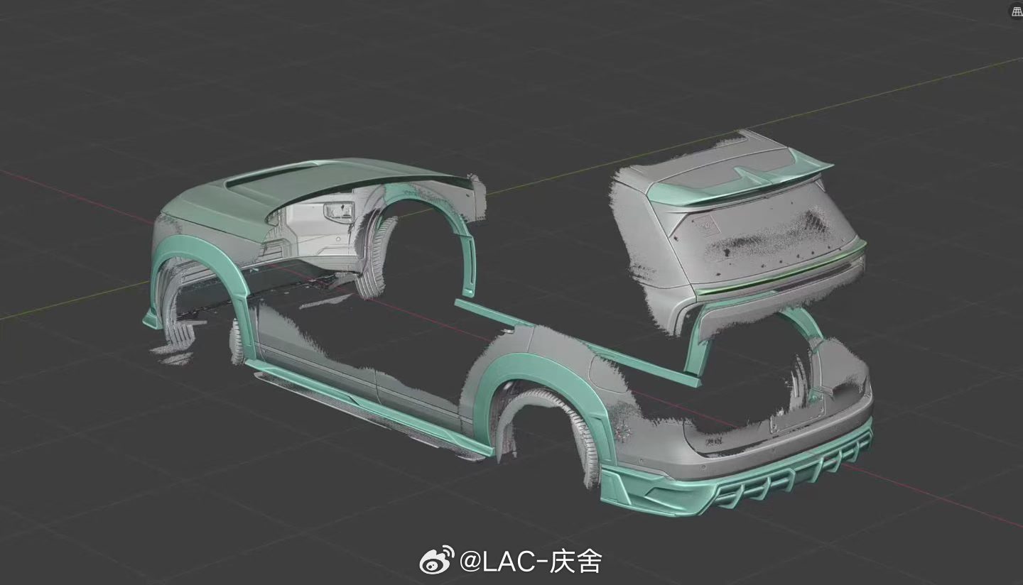 朋友开发了极氪9X干碳宽体套件 包含:前唇 侧裙 机盖 后唇 后包角 中翼 顶翼 宽体轮眉结合9X的造型以及车主的消费能力,外加每个月大几千台的销量,应该是个不错的项目