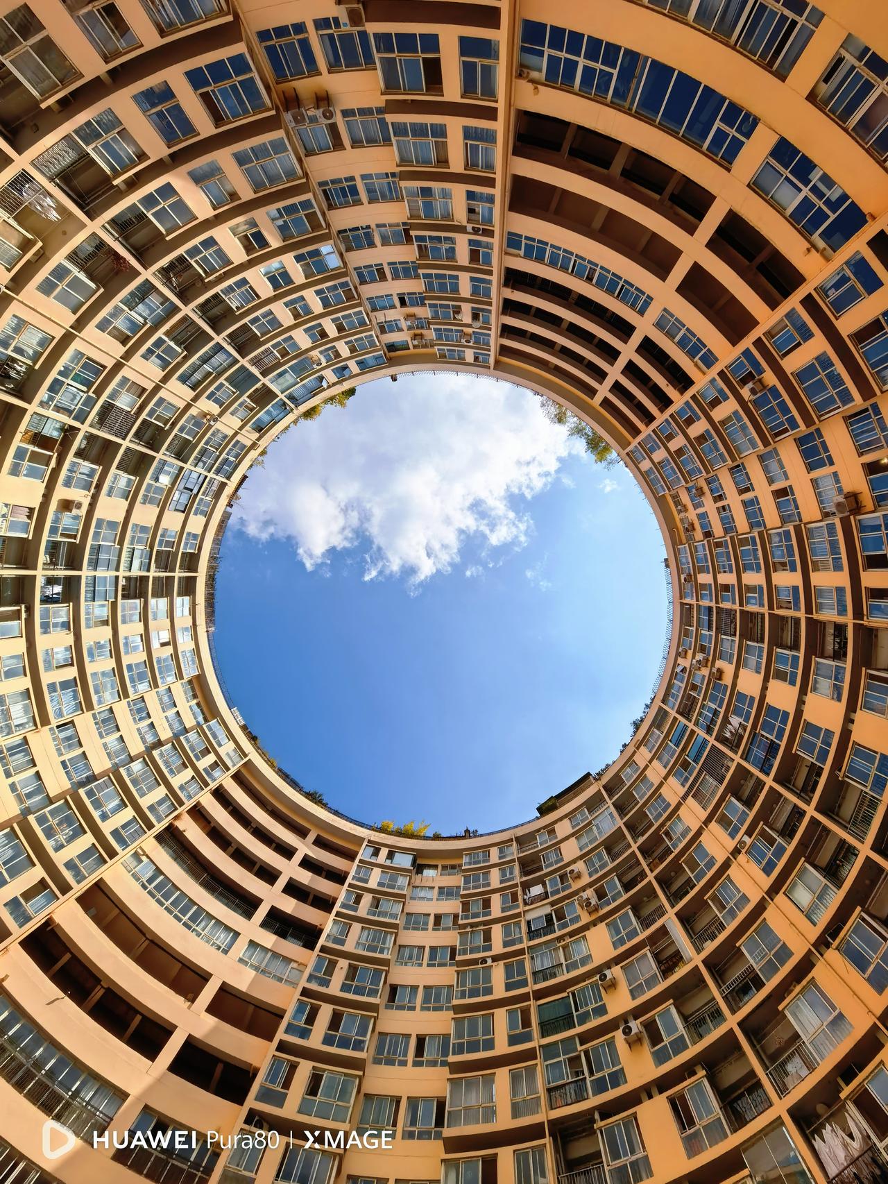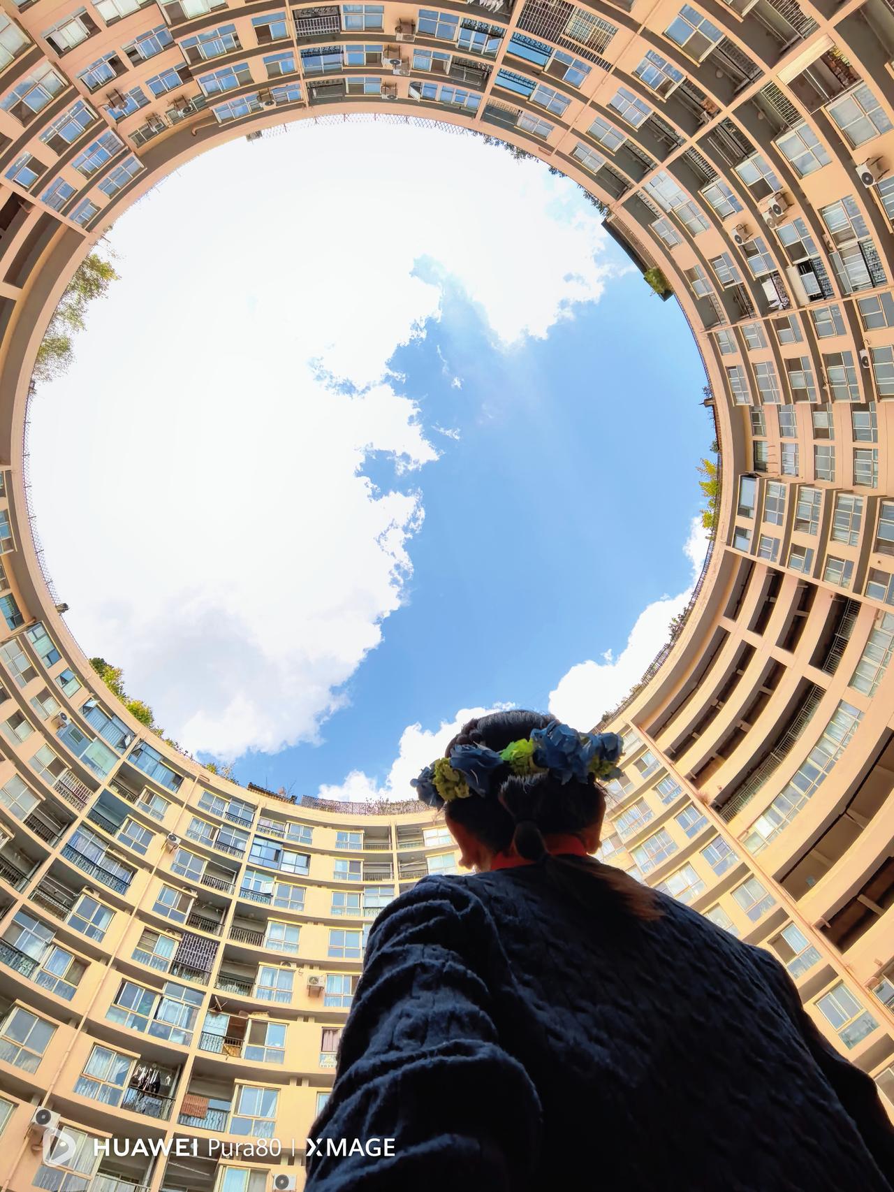 打卡昆明天空之眼。环形天井像一只温柔的眼睛,把春城的蓝天与白云轻轻框住。阳光正好,风也温柔,在城市中心遇见这份治愈的浪漫