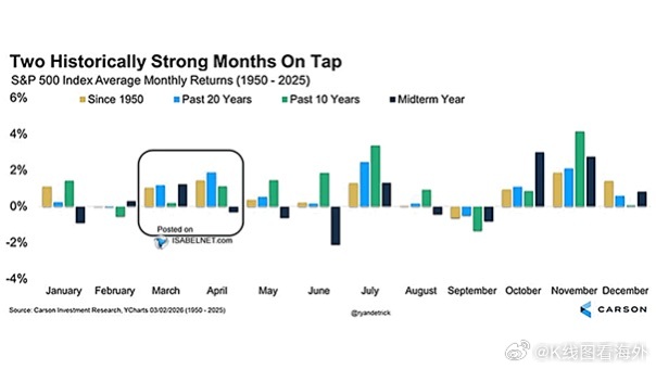 1950年以来标普500的月度平均回报显示:4月、10月、11月往往是全年表现最强的几个月,其中 11月历史平均涨幅最高。而 2月和9月通常相对偏弱。虽然季节性规律不能保证未来,但市场确实存在一些长期统计偏好。投资有时也像天气——有“季节”。
