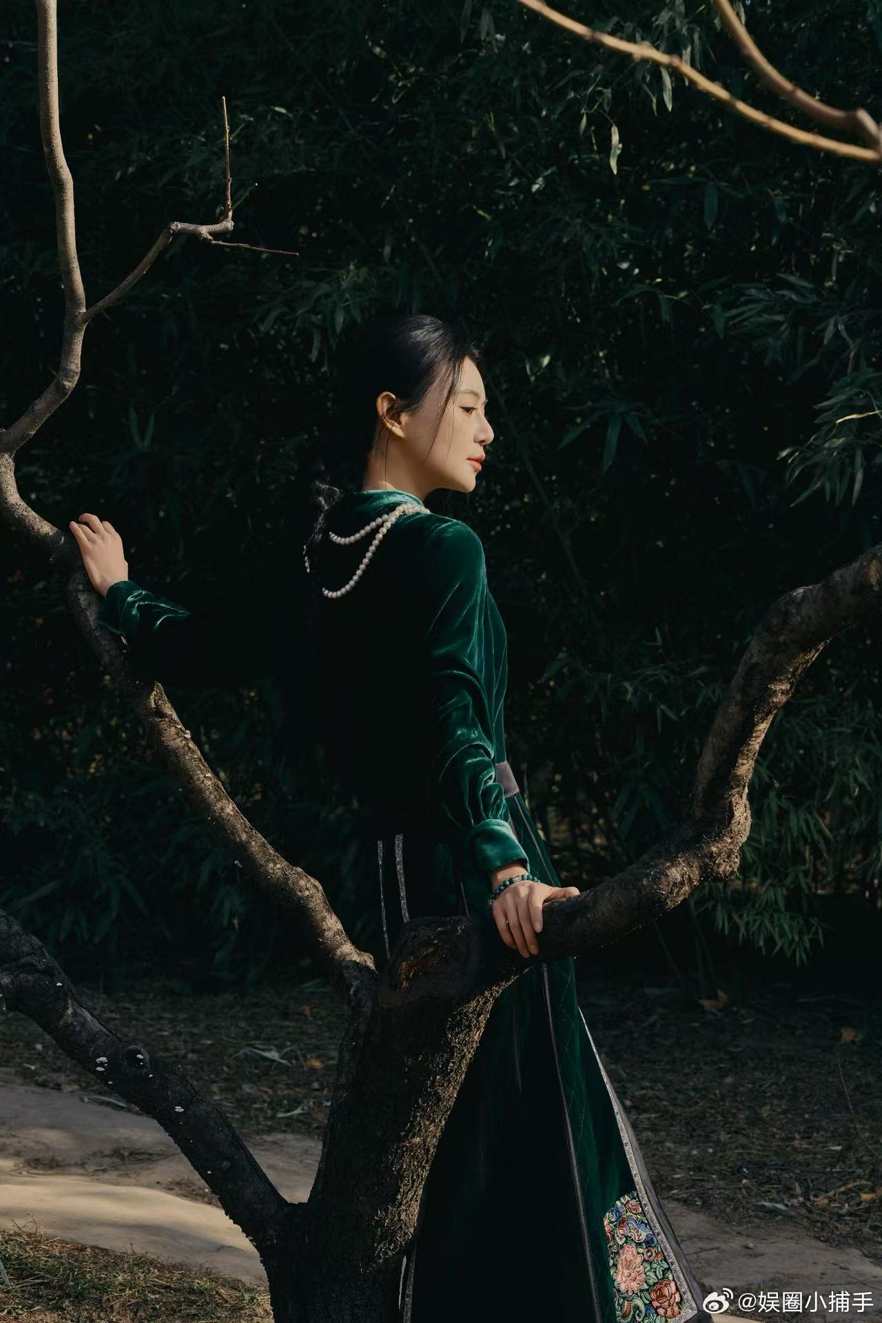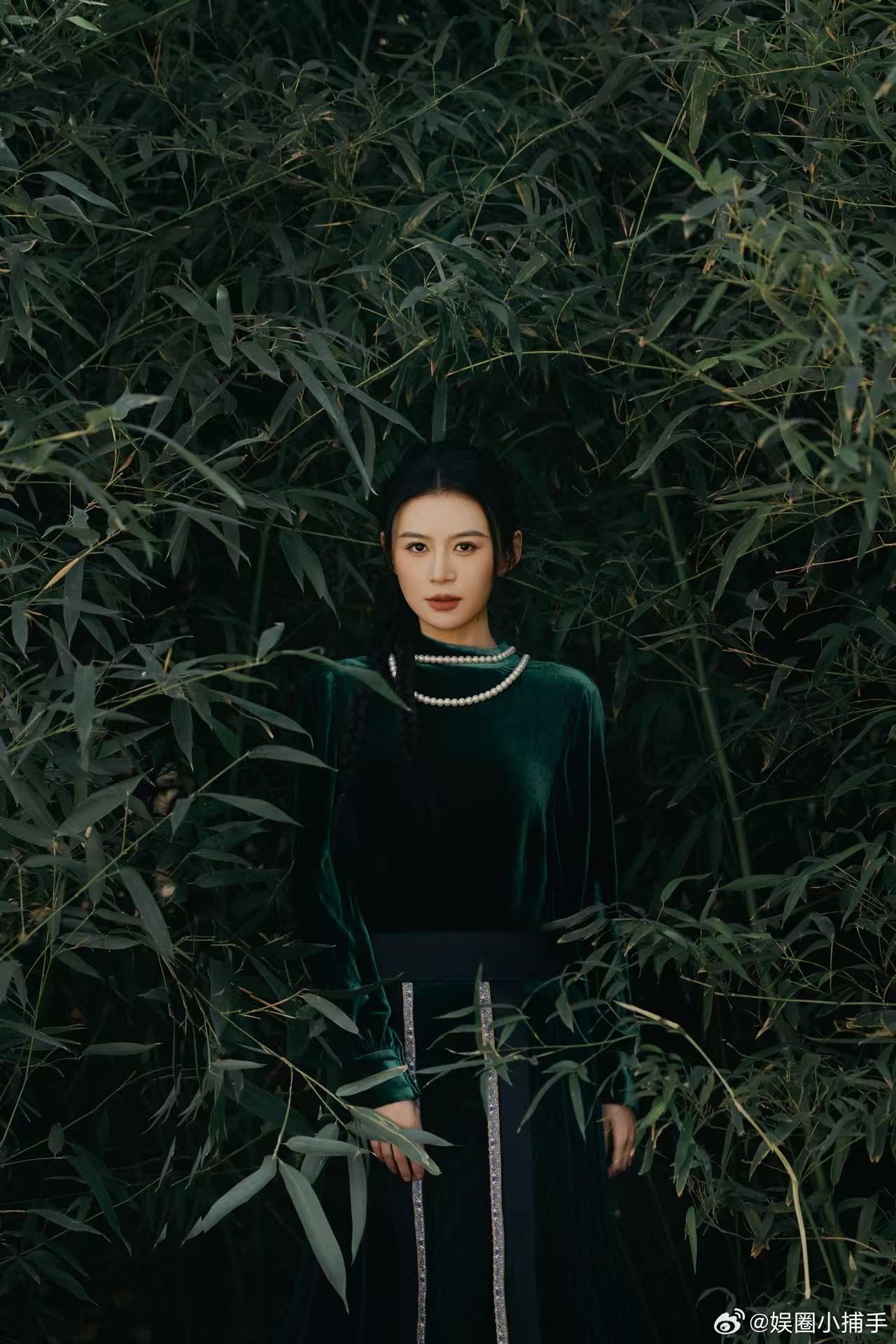 元宵限定美貌已上线!刘子鹤身着墨绿丝绒长裙,在青竹间尽显东方温婉,灵动眼眸太迷人,像极了古画里的美人,这组写真直接美出新高度!