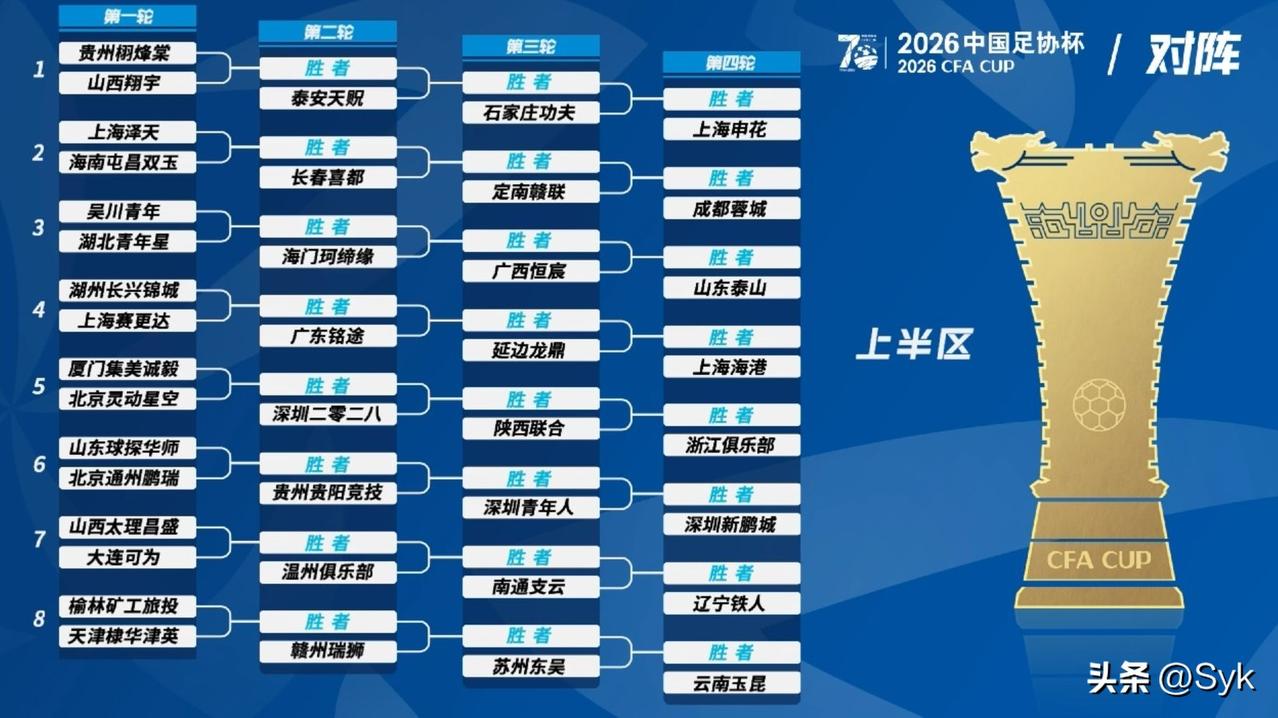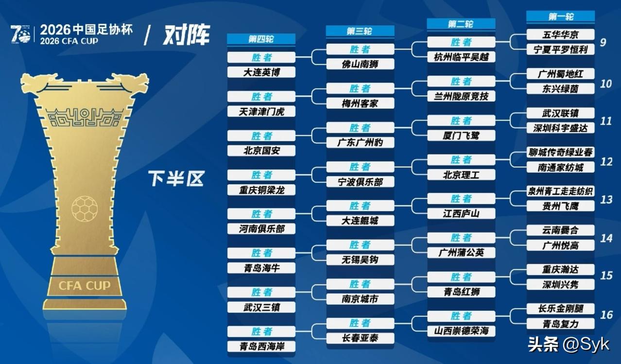 2026足协杯这签抽的,北京国安直接躺赢预定决赛门票了吧? 上半区豪门扎堆,上海申花、山东泰山、上海海港全挤一块儿,成都蓉城、浙江队、辽宁、玉昆也在里面搅局,这哪是杯赛啊,这简直是提前上演的中超冠军争夺战!谁从这半区杀出来,不得掉层皮? 再看下半区,国安作为卫冕冠军,直接被分到了“舒适区”。虽然还有大连英博、天津津门虎这些队,但跟上面那堆豪门比,强度差了可不是一星半点。这签运,说一句保送决赛不过分吧? 只能说,国安这波是赢在起跑线了,就看他们能不能把握住机会,把这“躺赢”的签运,变成实实在在的冠军奖杯了!