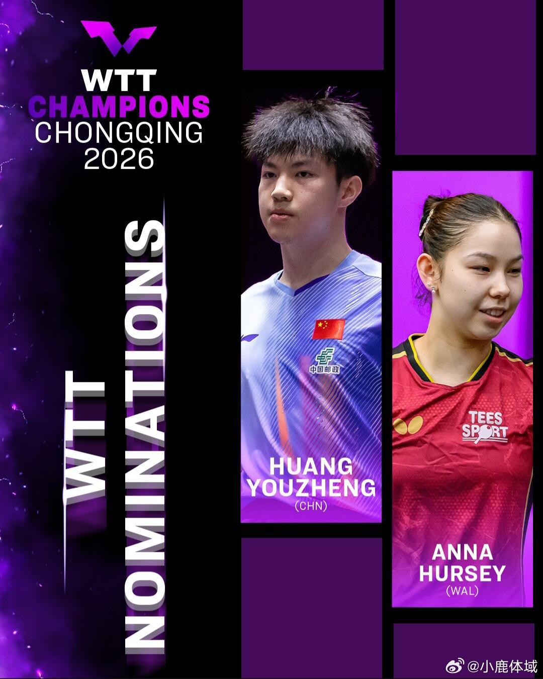 温瑞博石洵瑶获重庆冠军赛外卡WTT重庆冠军赛2026|主办方外卡、WTT提名主办方外卡:温瑞博、石洵瑶WTT提名:黄友政、安娜·赫尔希黄友政获重庆冠军赛提名