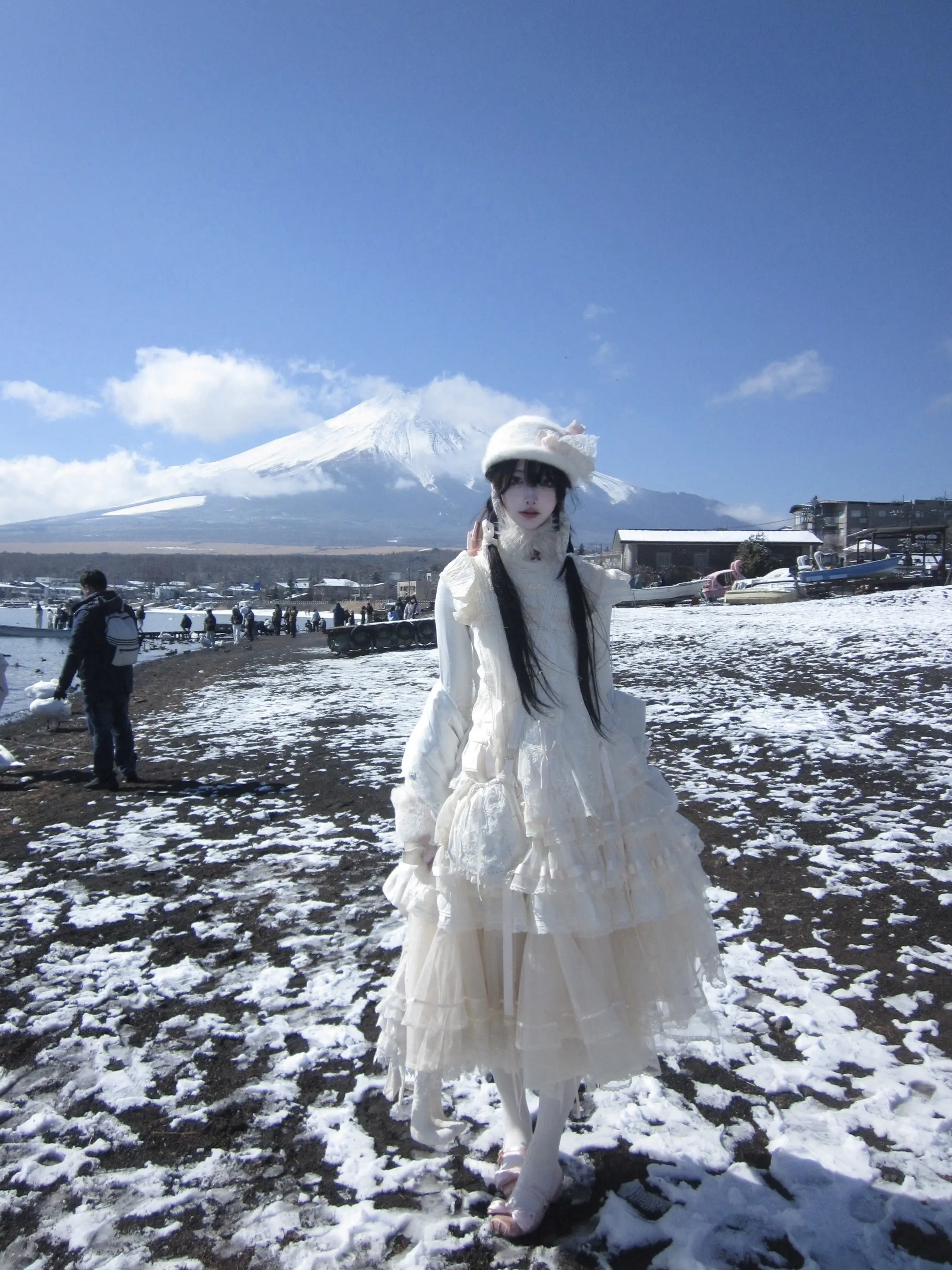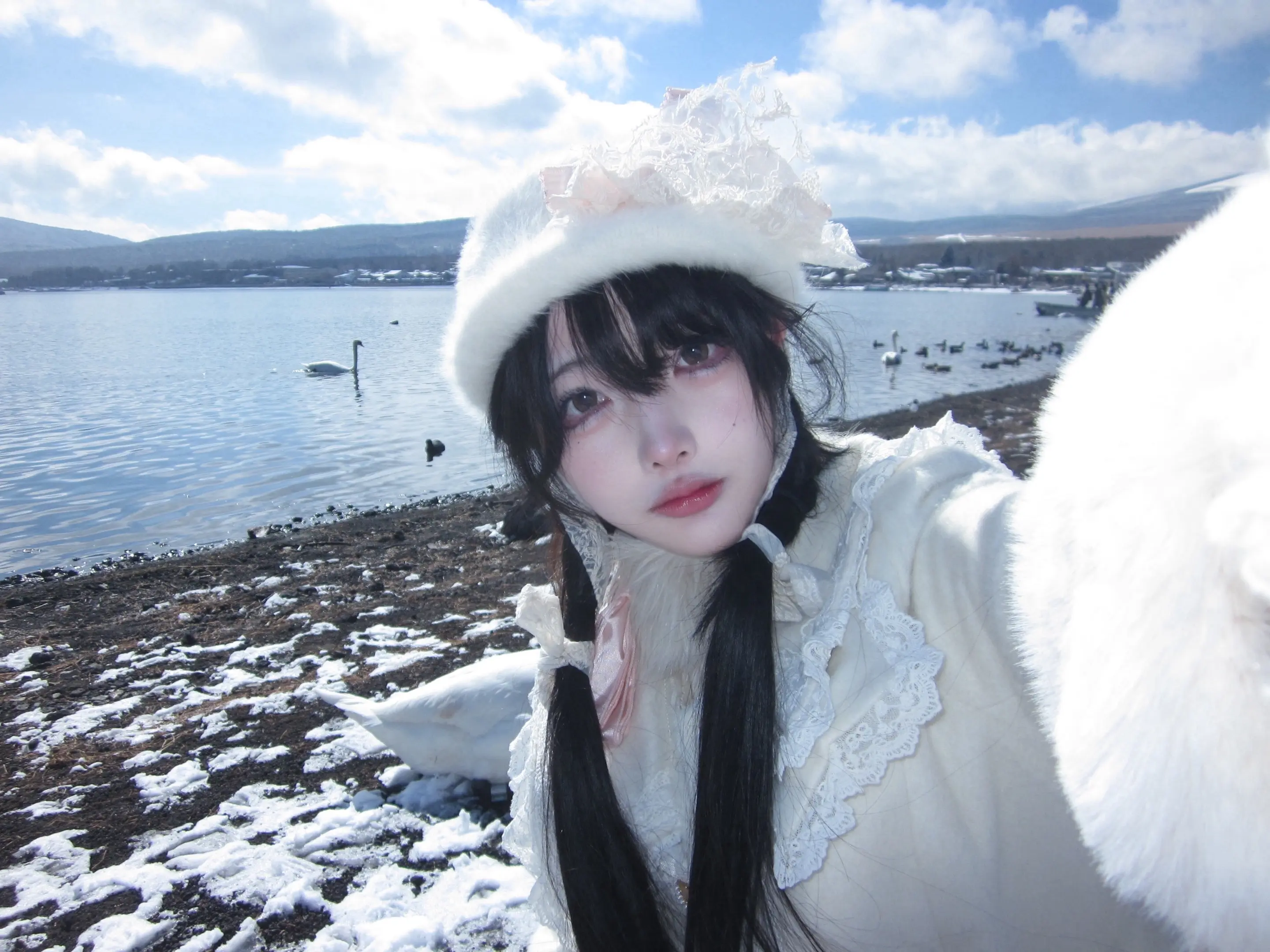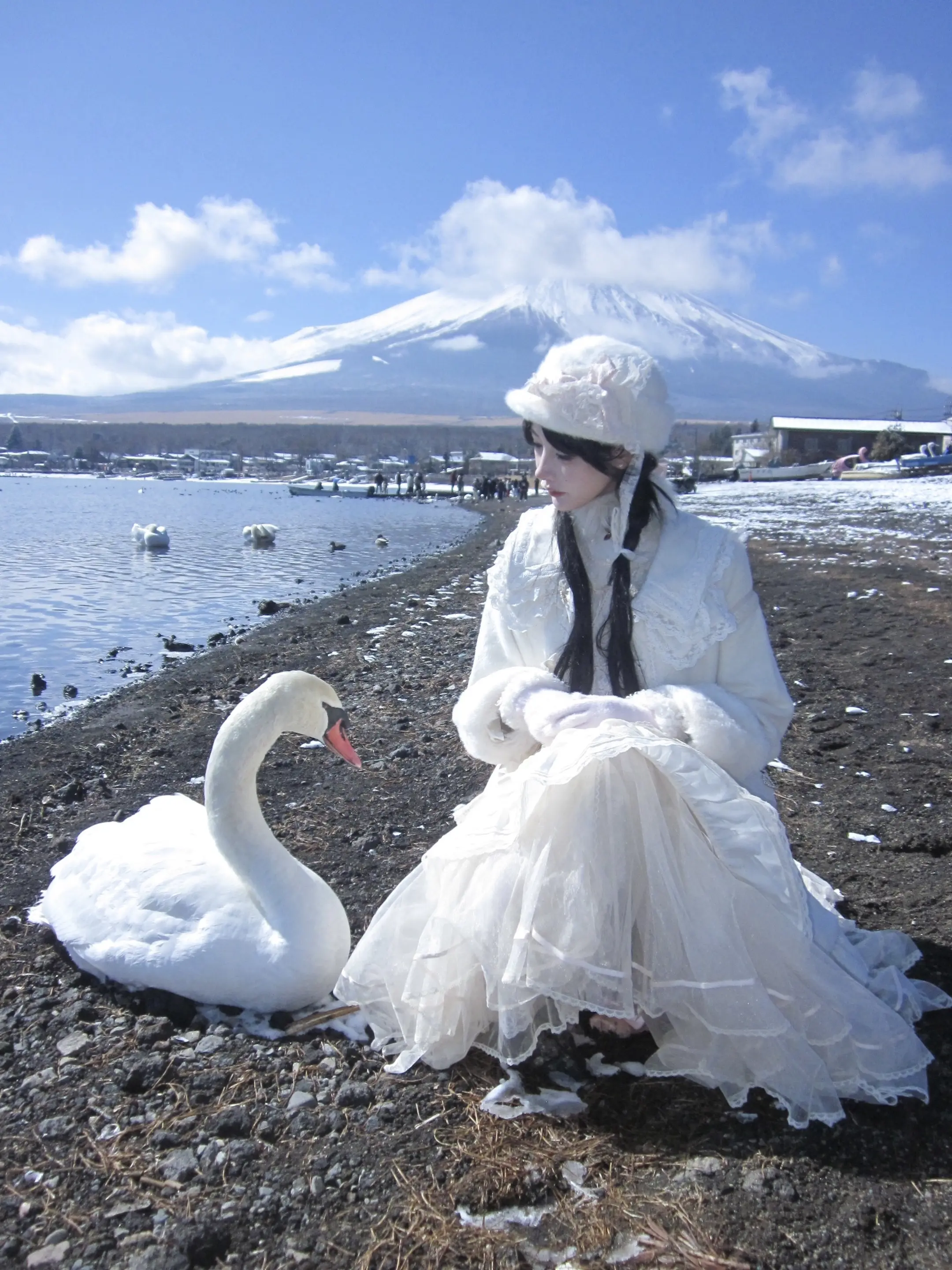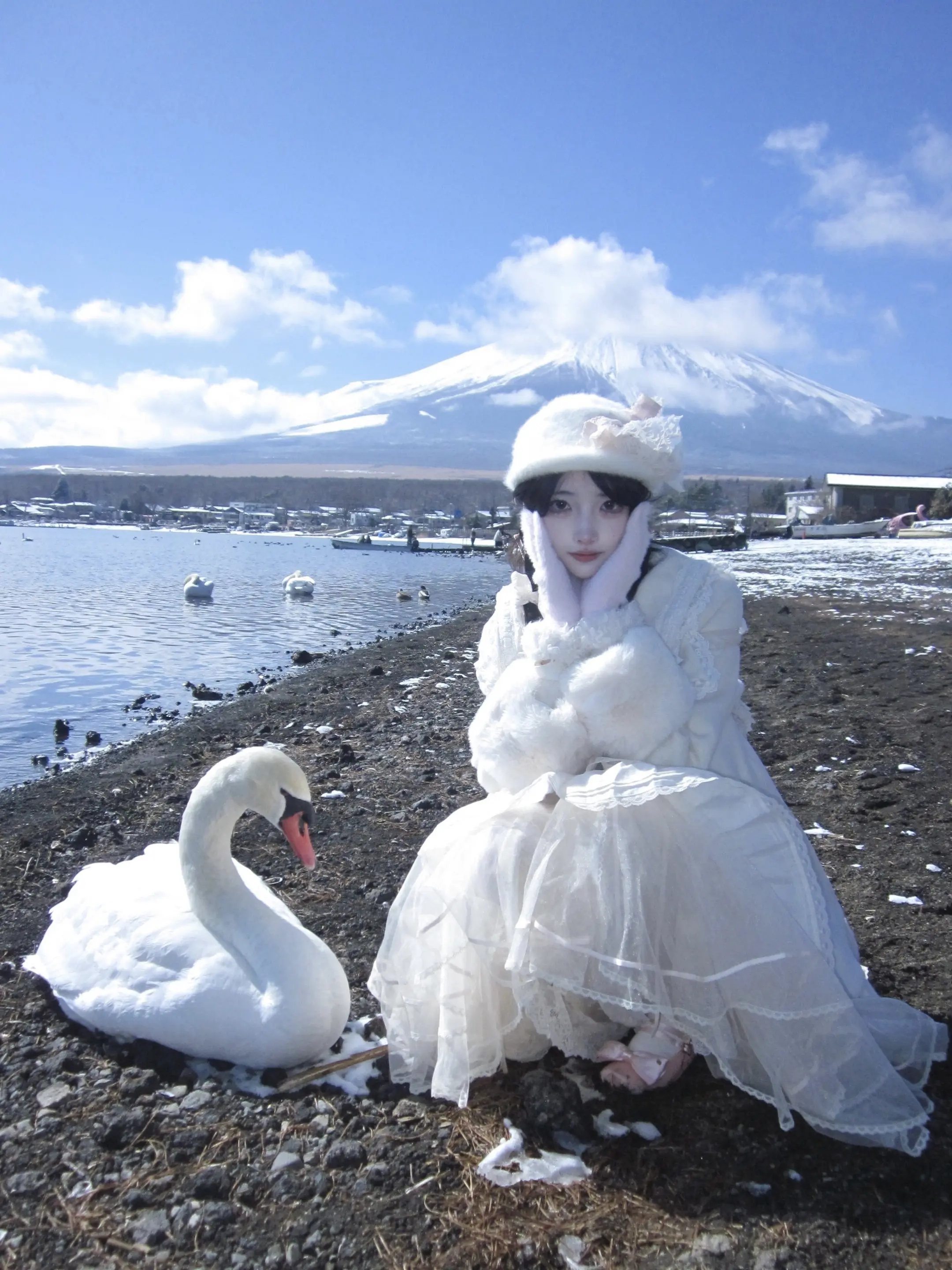 富士山下。遇到了山中湖最温顺的天鹅 -