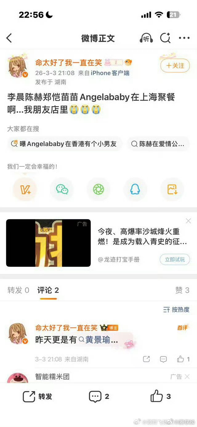 曝李晨郑恺陈赫Angelababy上海聚餐曾经的跑男团是多少人的心中的遗憾啊!大家对他们的怀念真的太深太深,好希望他们能在合体啊!即使听到一点可能会合体,但没有明确公开的消息,也会很激动