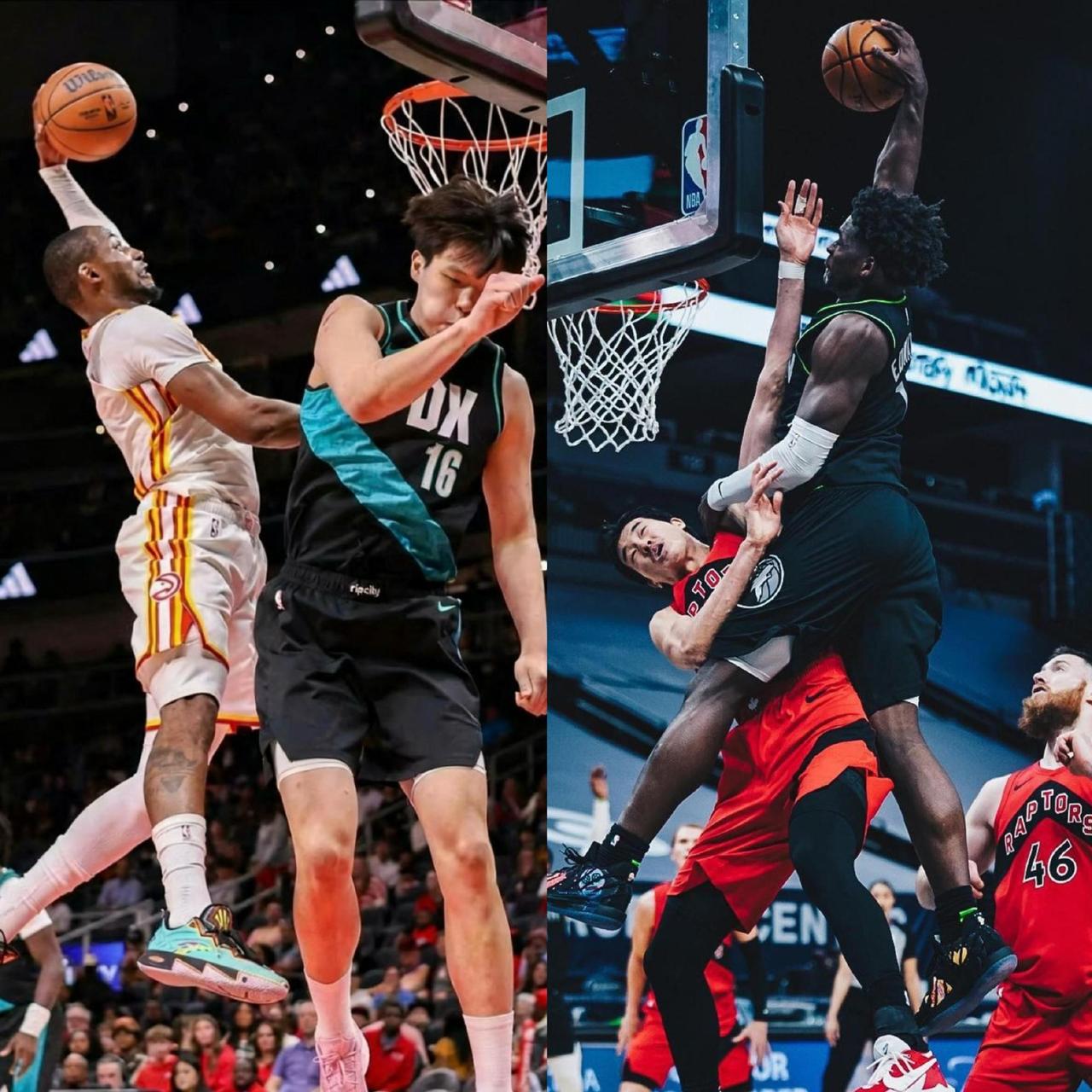 NBA两位亚洲球员被隔扣瞬间:杨瀚森vs渡边雄太