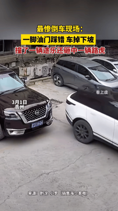 茅台镇停车场惊魂:路虎倒车连环撞,三辆豪车叠成“积木”…… 仁怀市某停车场的灯光下,白色路虎揽胜的倒车影像亮着冷光。女司机双手扶着方向盘,左右打轮调整了四次,脚踩刹车的力道忽然松了——车屁股猛地向后沉,“砰”的一声闷响,狠狠撞向身前的日产途乐。 途乐的保险杠瞬间被撞得弯折,塑料碎片溅在地面。还没等周围人反应过来,白色路虎突然向前猛冲,轮胎碾过路边的草坪,带起一片湿泥,径直朝着旁边的排水沟扎去。 更巧的是,沟底正停着一辆黑色揽胜。白色路虎的车顶重重砸在黑色揽胜的引擎盖上,铁皮挤压的“哐当”声里,两辆车像被强行按在一起的积木。黑色揽胜的车顶被压得塌陷,天窗玻璃碎成渣,散落在沟底的泥土里。 途乐车主赶来时,手里的矿泉水瓶都晃出了水。他看着爱车前灯碎成蛛网、保险杠脱落的模样,脸色瞬间发白。白色路虎的车门被拉开,女司机扶着门框走出来,手指还在微微发抖,鞋底沾着沟里的黑泥,眼神里满是慌乱。 吊车赶到时,周围已经围了几十个人。手机镜头对着沟里的三辆豪车,白色路虎被吊起来时,后视镜还挂在黑色揽胜的车身上。维修厂师傅绕着三辆车转了两圈,伸手摸了摸变形的车身,只低声说了句:“专挑贵的碰,这修起来得花大价钱。” 如今停车场边的草坪补了新土,监控摄像头正对着那片空位。路过的司机倒车时,都会特意探出头看一眼沟底,脚步都放慢了几分。旁边卖烤肠的阿姨总跟人念叨:“那天就听‘砰’的一声,我就知道肯定是好车出事了。” 你平时倒车或开车时,有过脚下发懵、差点踩错踏板的经历吗?遇到过这种让人捏把汗的突发状况吗? 仁怀停车场豪车连环撞 路虎倒车误踩油门 错把刹车当油门的瞬间