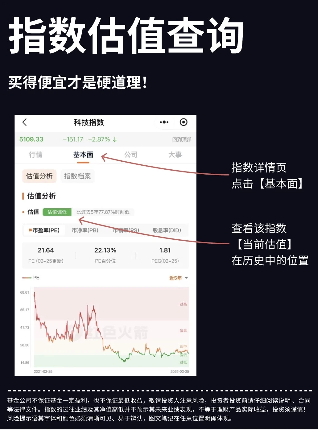 -指数估值查询:查看该指数当前估值在历史中的位置,买得便宜才是硬道理。