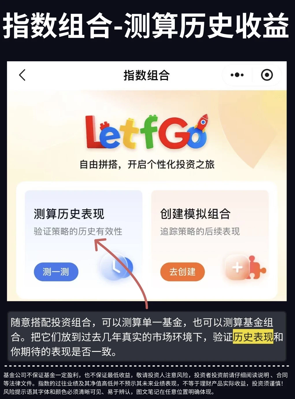 -指数组合功能:测算基金或基金组合,验证历史表现和你期待的表现是否一致。