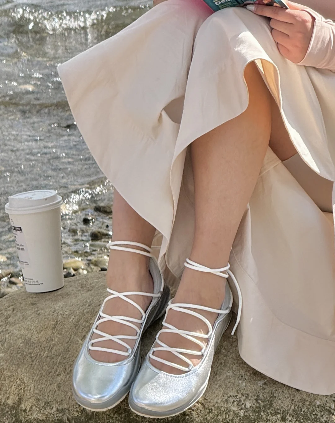 它的绑带设计不仅很好地修饰了脚踝显得腿更修长