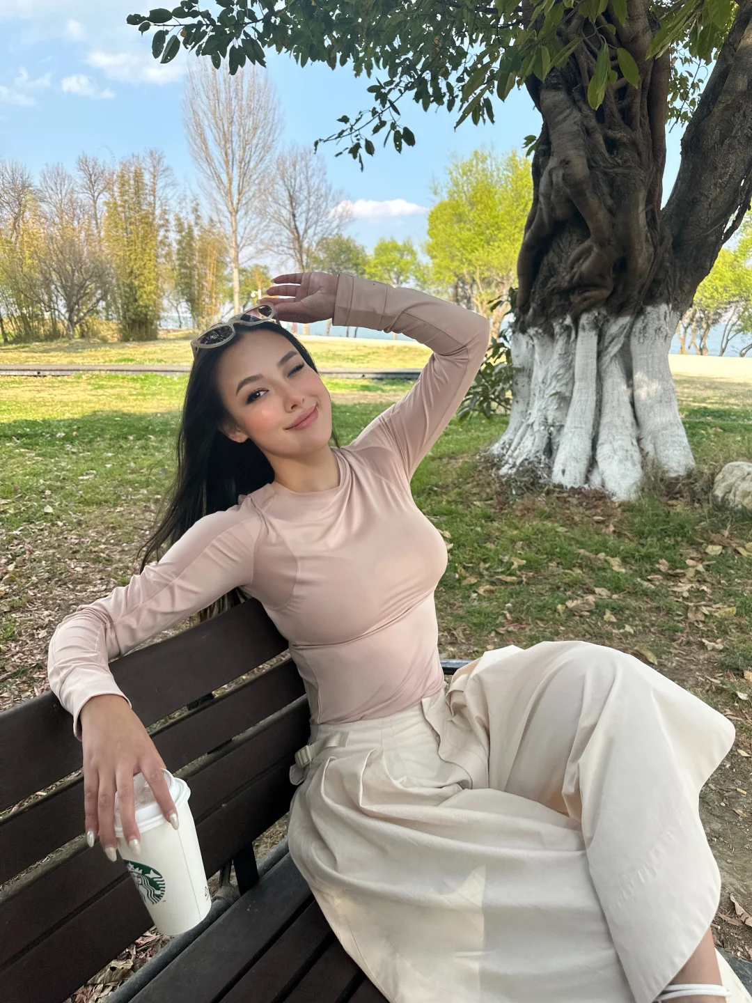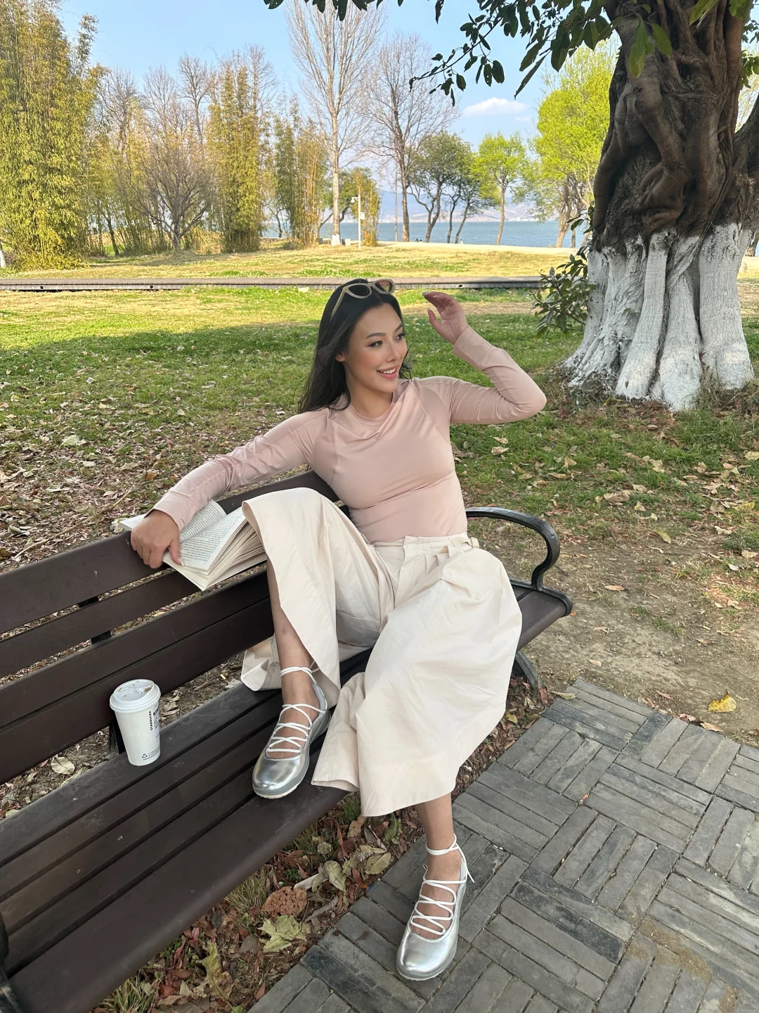 这条ECCOxNRL设计师合作系列的蝶翼裤版型像A字裙梭织面料挺括有型,在海边的风中飘逸灵动。