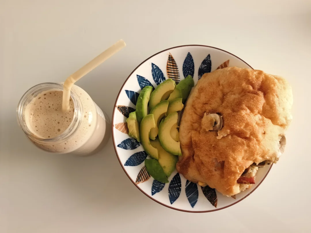 口蘑再不吃坏了,年前就到手的牛油果也快坏了,今天早上食材就多一点,又多加了一片芝士,直接把恰巴塔撑爆了。最后想说橙子桂花酱加咖啡牛奶了不好喝啊,是我方式不对吗?总觉得有点橘子皮的腥味,是不是冰牛奶会更好?
