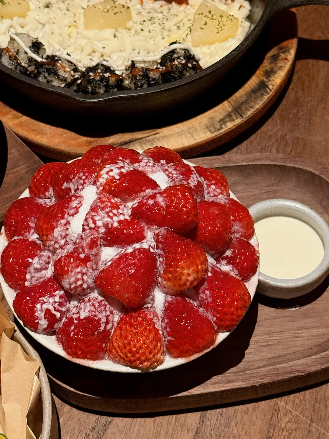 切记提前线上取号 避免现场排队时间比较长! 真的很爱吃哈哈哈! 点单攻略: 鲜草莓雪冰 马苏里拉芝士辣炒鸡 香料炸鸡 碳烤和牛肋排 火山芝士鸡蛋糕 真的不会踩雷的哈哈哈