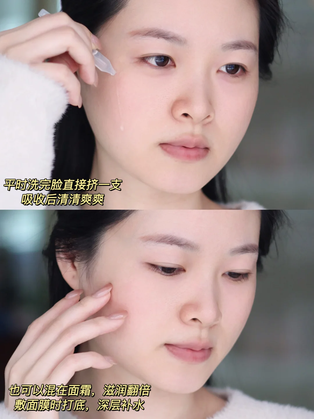 我现在玩法可多了——平时洗完脸直接挤一支,清清爽爽;有时候觉得脸干,就混在面霜里用,滋润翻倍;敷片状面膜前先涂半支打底,敷完再把剩下的半支按上去,第二天起床那个脸啊,软得跟豆腐似的,干纹都被撑开了!真心离不开这支宝藏次抛~[赞R]
