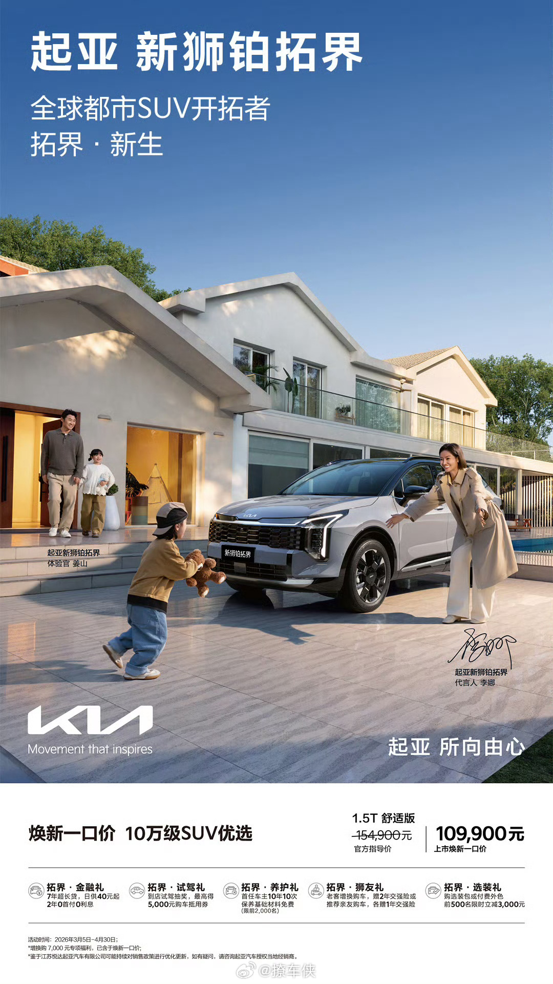 李娜姜山认定的家用suv 李娜官宣代言新狮铂拓界,这波梦幻联动我直接嗑疯,不愧是网坛传奇挑中的家用SUV,外观颜值在线不说,内饰大屏+氛围灯直接拉满仪式感。重点是全系标配8AT还不挑油,L2智驾给全家安全感,10.99万起还有5重福利,这诚意你冲不冲?大v聊车