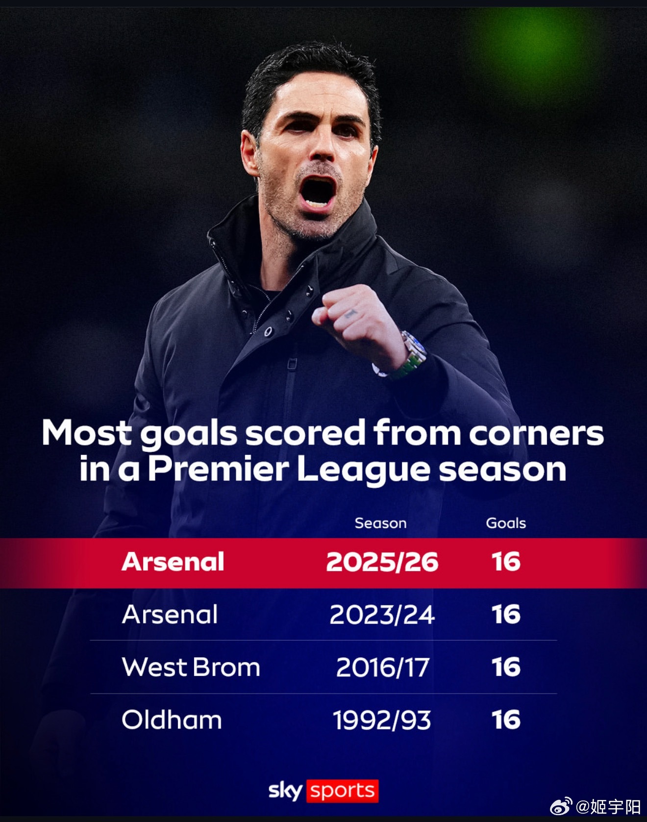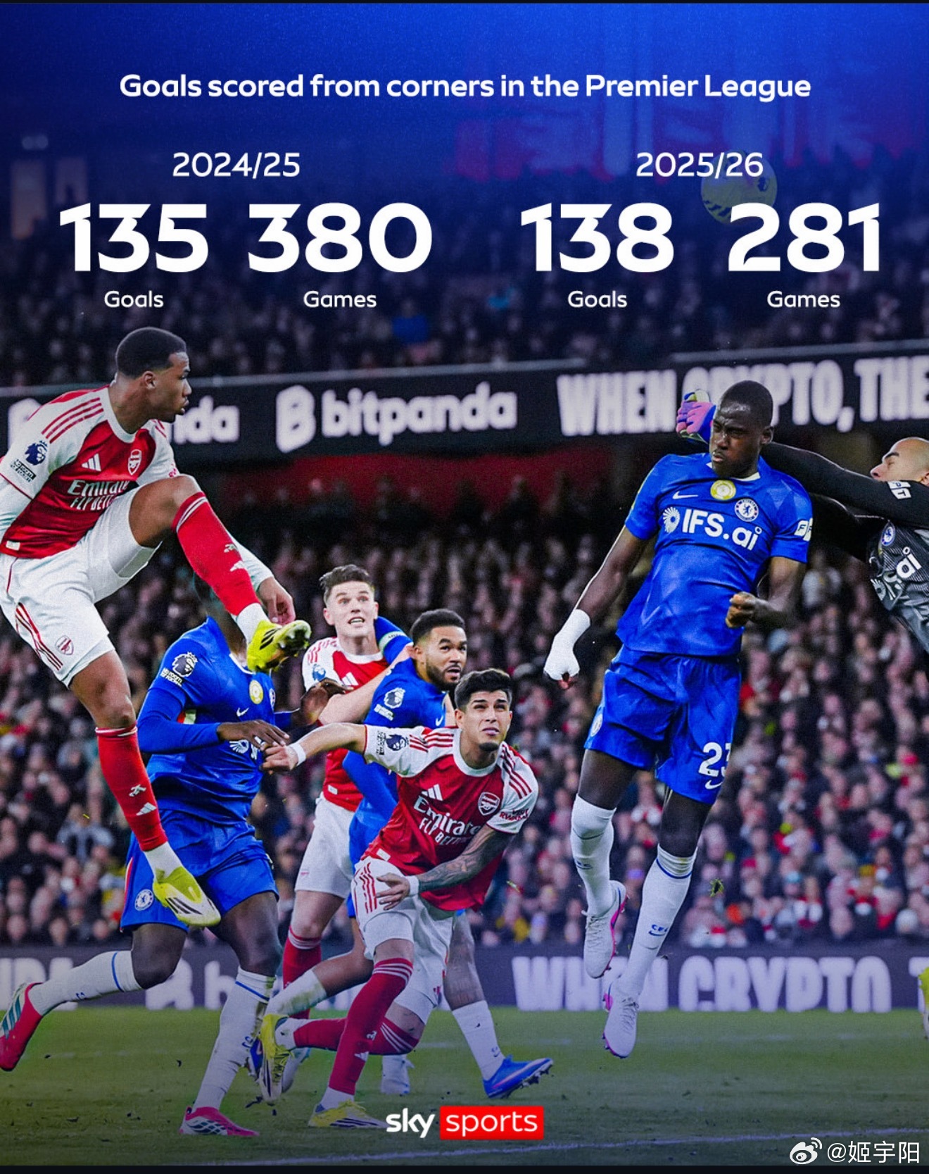 据媒体披露,阿森纳的定位球教练尼古拉斯·乔弗的执教合同里,特别设置了一个定位球进球奖金条款。(图一)到目前为止,阿森纳这个赛季英超已经通过角球进了 16 个球。再进一个就可以创造英超历史的新纪录!(图二)英超各支球队这个赛季总共已经在 281 场比赛里通过角球完成了 138 个进球。要知道上个赛季,所有球队总共 380 场比赛打完后,角球进球是 135 个(图三)。本赛季英超联赛角球的总进球数,同样也正在创造历史新纪录。