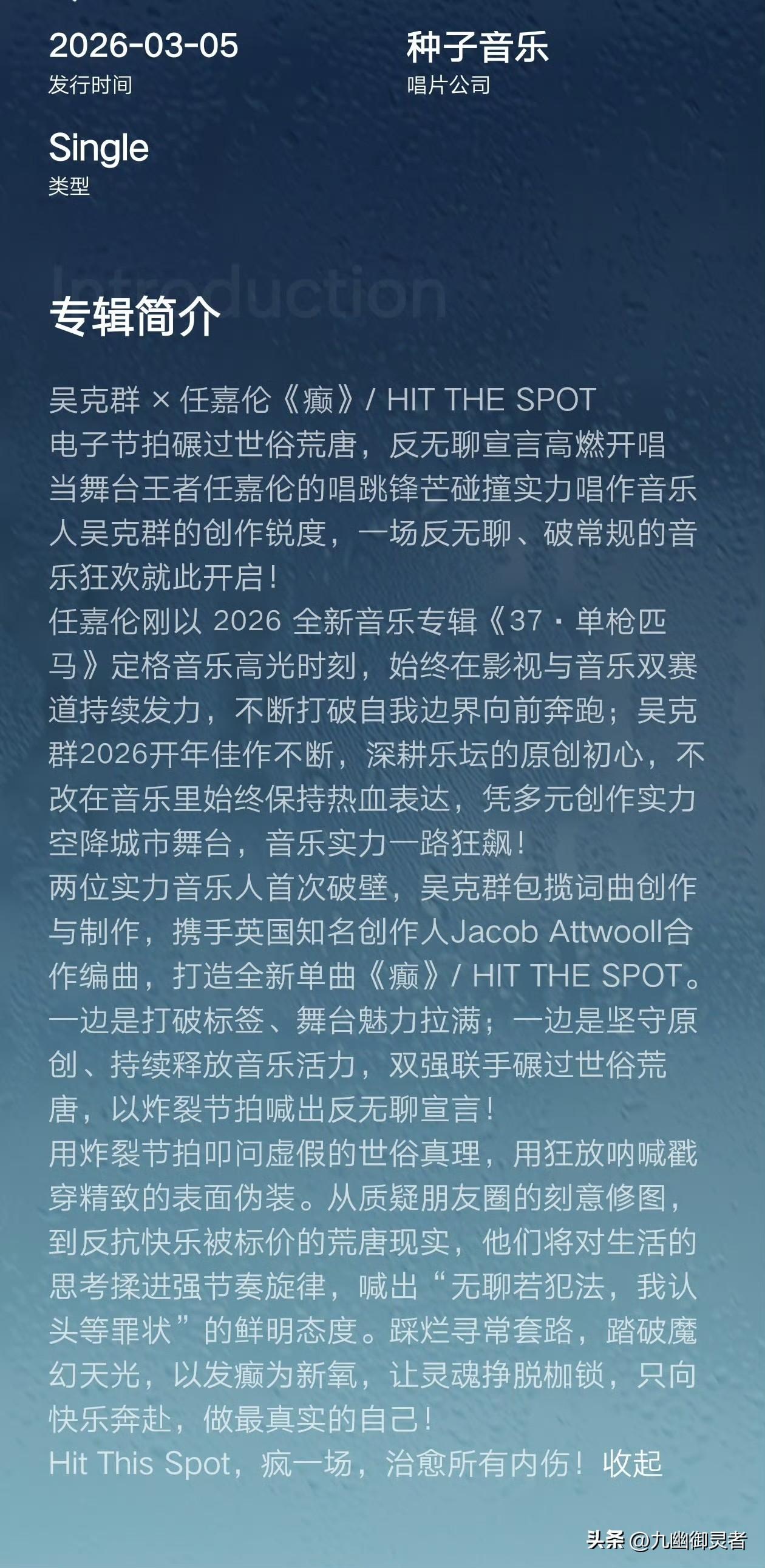 我的天啊,不是吧?打开某博[爱慕] 就看见任嘉伦和吴克群首次合作的新歌曲《颠》的视频 嘉伦现在的惊喜都不带预告的吗 也是,有预告的惊喜就不叫惊喜啦[大笑][大笑][大笑] 这首歌确实很颠很上头 他俩的声音出奇地合拍,很惊艳 嘉伦的真假音转换简直丝滑到离谱高音更是直接给我听懵了 这实力也太顶了吧[赞][赞][赞] 各位颠友赶紧去QQ音乐无限循环听起来吧[偷笑][偷笑][偷笑] (悄悄的告诉大家,这首歌很适合做起床铃声哦[大笑]) 任嘉伦 任嘉伦最新动态