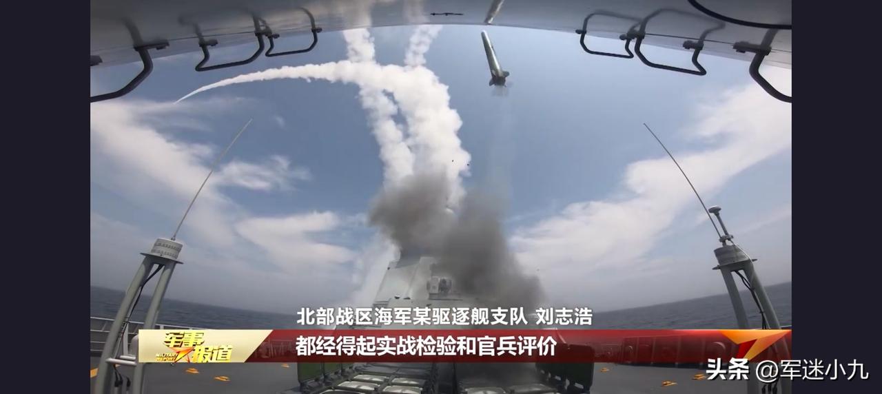 震撼了!052D,最新多目标拦截画面曝光:中国海军战力,远超你想象! 最新报道的画面,北海舰队的实战化演练 公开的画面中,有一个画面,太震撼了, 机位,应该是在052D主炮附近, 直接记录一下了,防空导弹升空的瞬间, 采用冷发射,先将导弹抛出垂发, 然后,再点火冲向目标! 在画面中,可以清晰看到, 最后一枚没有发射之前,已经有3枚 防空导弹已经升空,导弹轨迹清晰可见, 可以看出,有2枚应该是去拦截同一个目标, 尾迹看着拦截方向是一致的, 另外一枚,是直接冲向了侧面, 最后一枚,升空后不知道会冲向哪个方向? 但是,可以肯定的是, 这时候,052D面临的, 应该是多个方向都有来袭的目标, 所以,052D启动了多目标拦截方式, 至少4枚防空导弹升空拦截! 这样的画面,确实不多见, 尤其是,直接展示4发接连发射的画面, 这也说明,实战化演练, 已经到了很高的水平! 大家觉得怎么样? 大家认识这导弹是什么型号吗? 052D驱逐舰 052D驱逐舰 评论区说说你的看法吧!