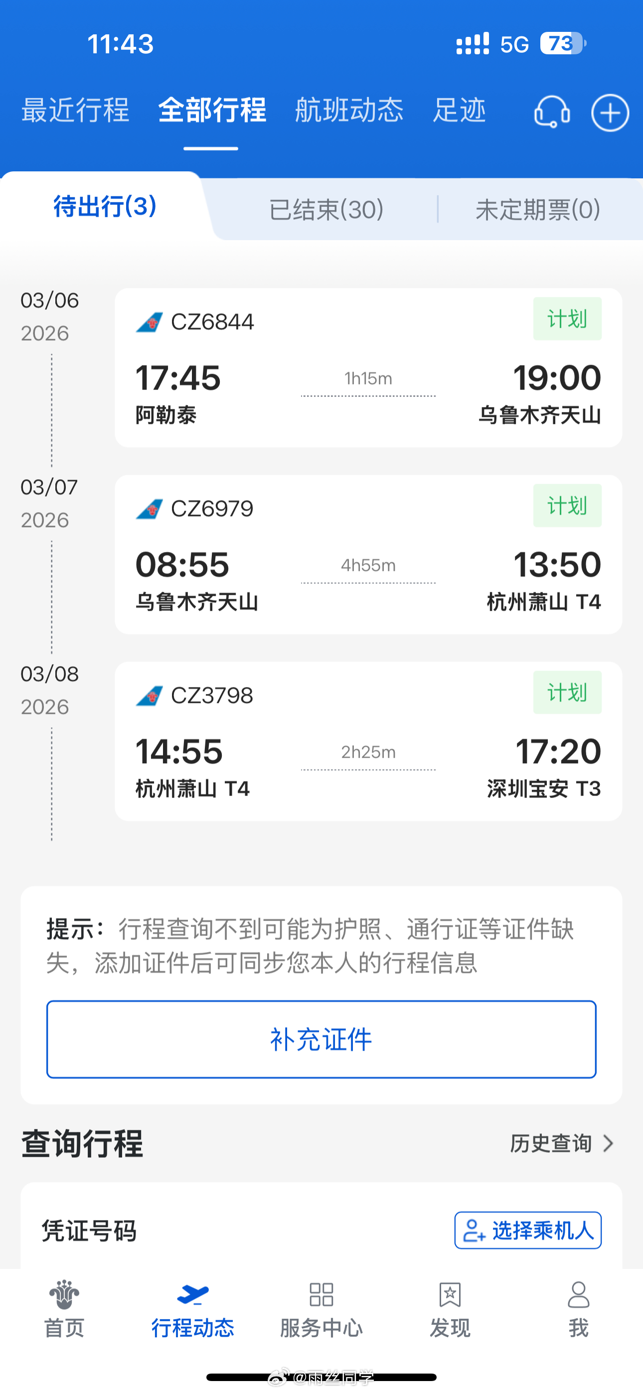 已到机场,等下落地杭州就要开始搬砖了话说,上次来还是地窝堡机场呢~雨丝的日常 乌
