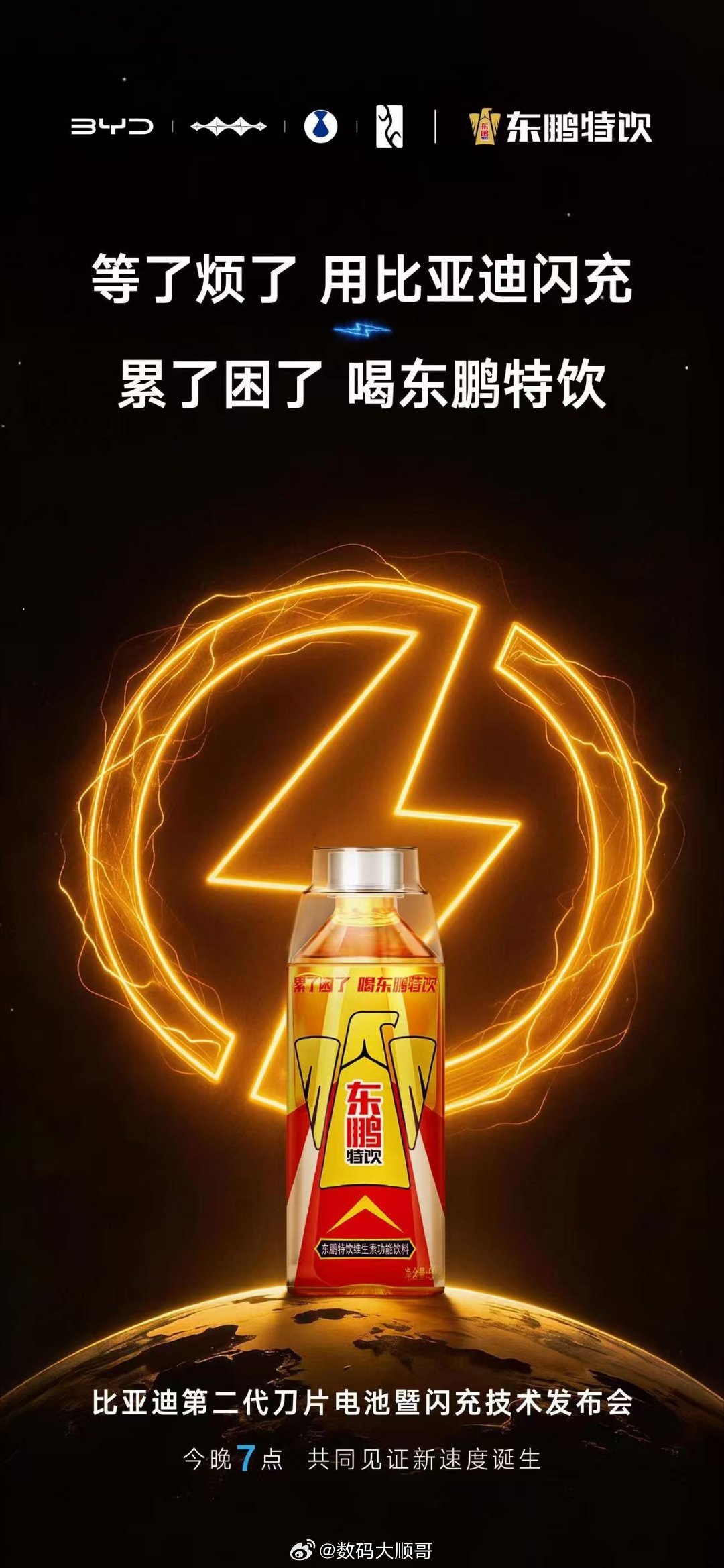 天下武功,唯快不破!比亚迪联手九大先锋品牌,把速度拉满!第二代刀片电池+闪充技术,让充电快人一步,美好从不等待!今晚19:00,一起见证闪充新时代!