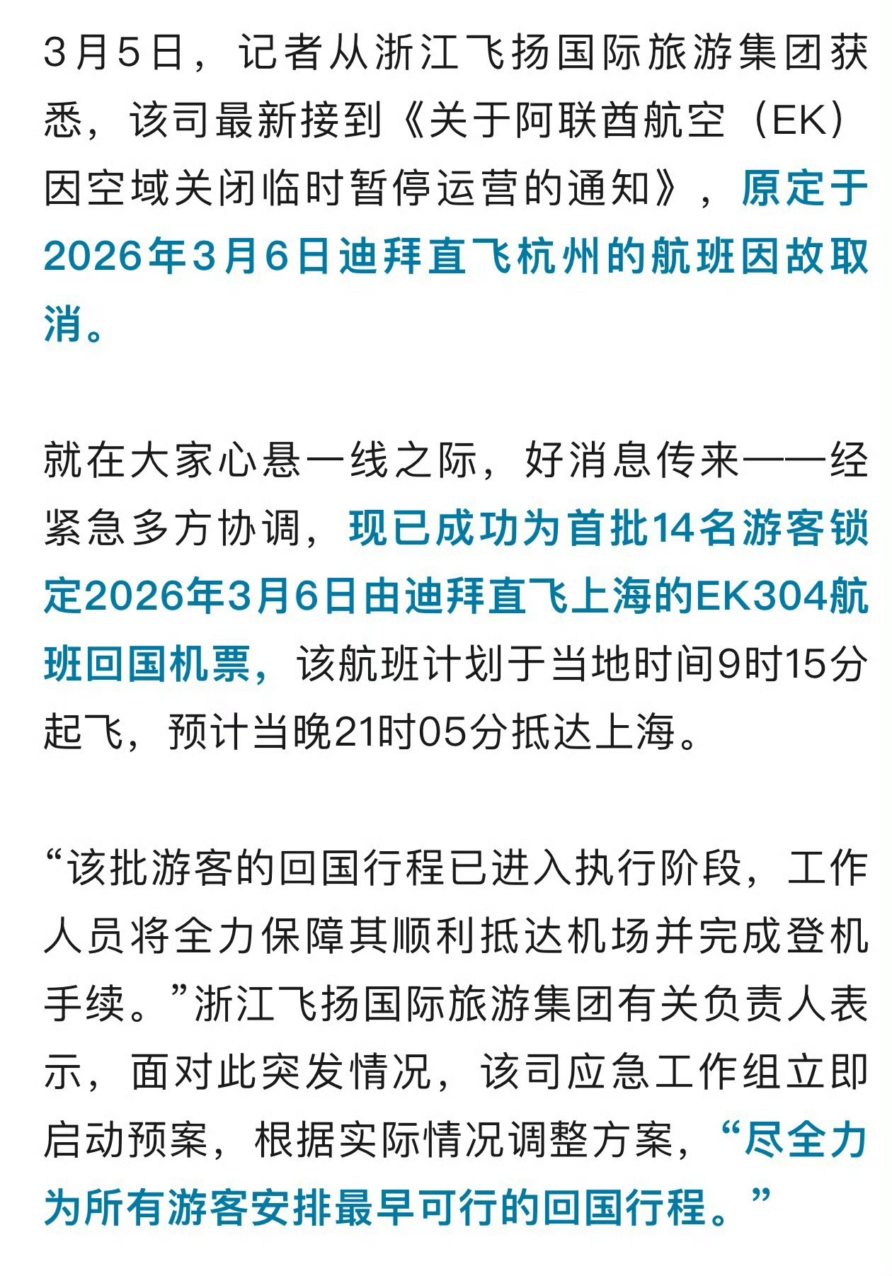 宁波游客滞留迪拜明日回国航班再次被迫取消 !旅行社启动紧急预案“尽全力为所有游客安排最早可行的回国行程”希望同胞们都平安回国