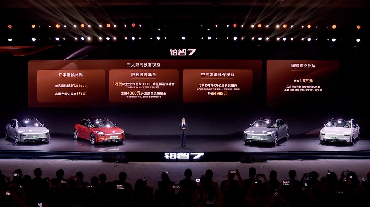 【限时15.68万起,广汽丰田铂智7开启预售】3月5日,广汽丰田铂智7开启预售,推出5款车型,预售价17.98万-23.98万元,限时权益价15.68万-20.98万元。外观方面,新车依旧延续丰田品牌的电动化设计语言,贯穿式LED日行灯呈现锤头鲨视觉效果,提供7种外观颜色。车身尺寸上,其长宽高分别为5130/1965/1506mm,轴距3020mm。来到车内,新车将会提供小尺寸液晶仪表+15.6英寸2K中控屏的组合,全系标配鸿蒙座舱5.0系统,支持智能语音交互与主动服务功能,高配车型提供HUD。辅助驾驶方面搭载Momenta R6飞轮大模型系统,配备27个传感器,支持高速与城市高阶辅助驾驶。车辆搭载双腔空气悬架,可调节车身高度与悬架软硬,并具备智能预瞄功能。动力方面,新车采用华为Drive One电驱,最大功率207千瓦,提供71.35kWh与88.13kWh两种磷酸铁锂电池,其中88.13kWh电池组对应的CLTC续航里程分别为680公里、700公里以及710公里,71.35kWh电池组对应的纯电续航为600公里。【来自懂车帝车友圈】
