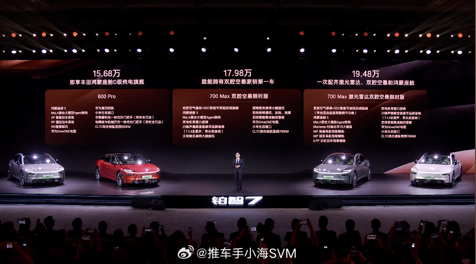 15.68万起的预售价,17.98万就能拥有双腔空悬、鸿蒙座舱纯电家轿第一车,19.48万即可一次买齐激光雷达、双腔空悬、鸿蒙座舱等豪华配置,行业唯一。丰田玩性价比狠起来让人有点害怕。