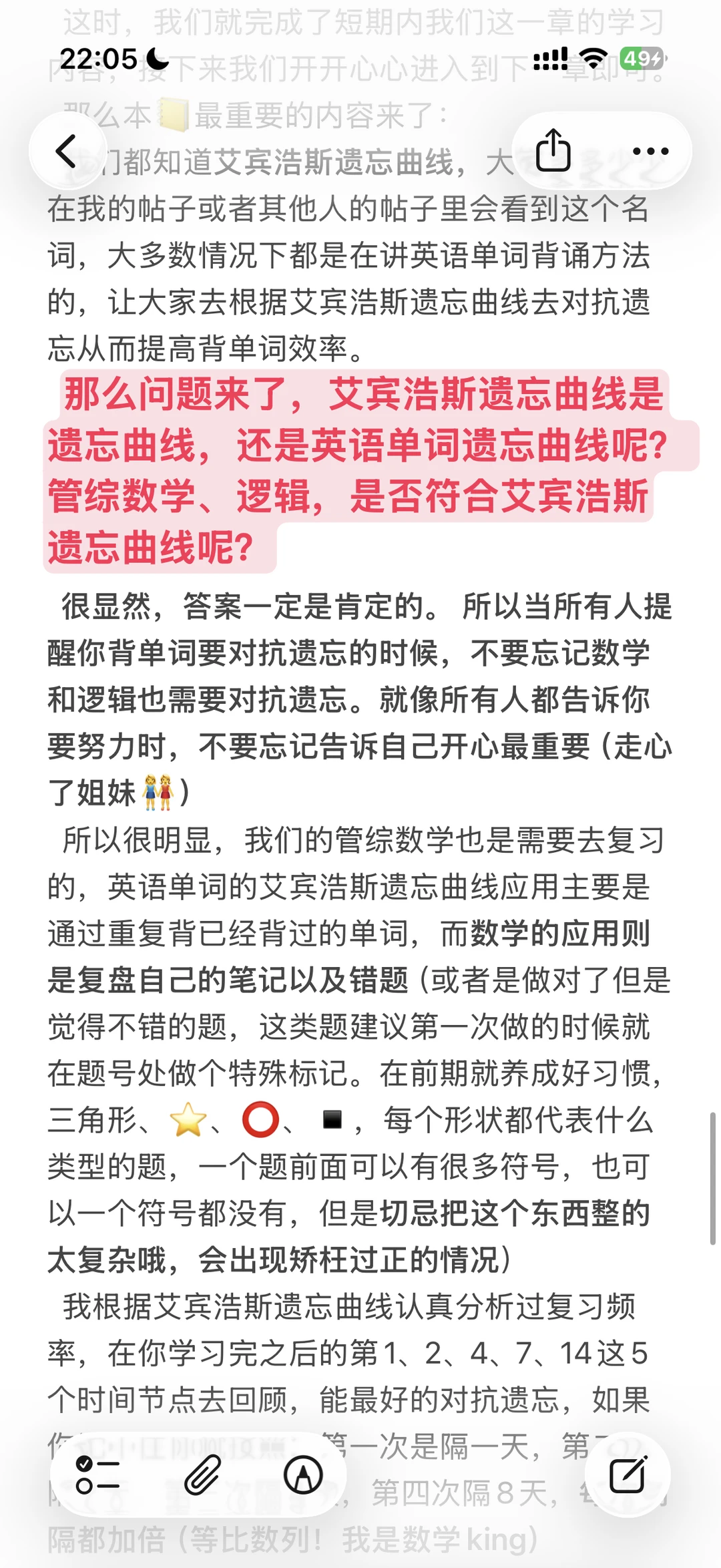 🔟2️⃣数学逻辑一样遵循艾宾浩斯遗忘曲线,要在学完后经常性复盘避免遗忘。