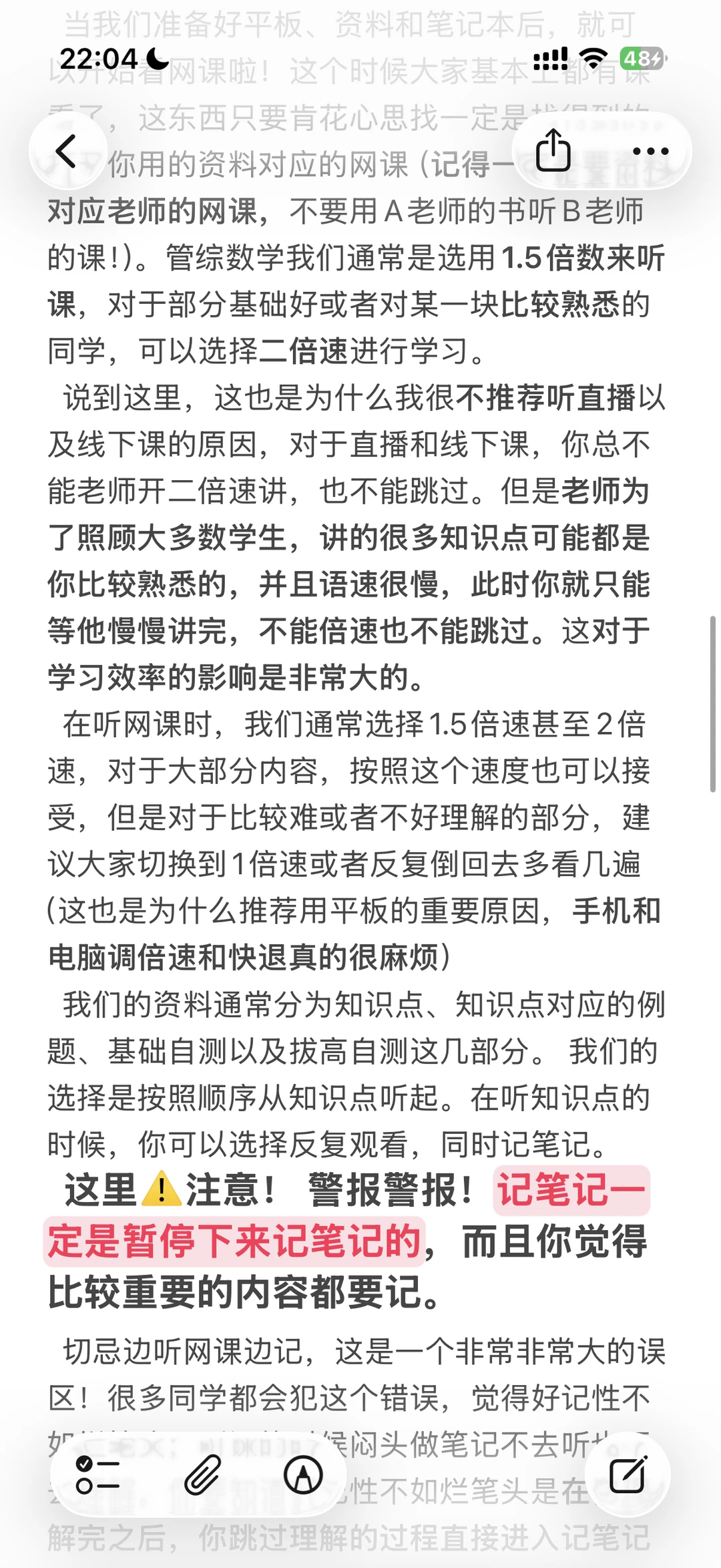 4️⃣用哪个老师的书就听哪个老师的课,1.5倍速听课,熟悉的部分2倍速,没理解的回倒重听,尽量不跳。