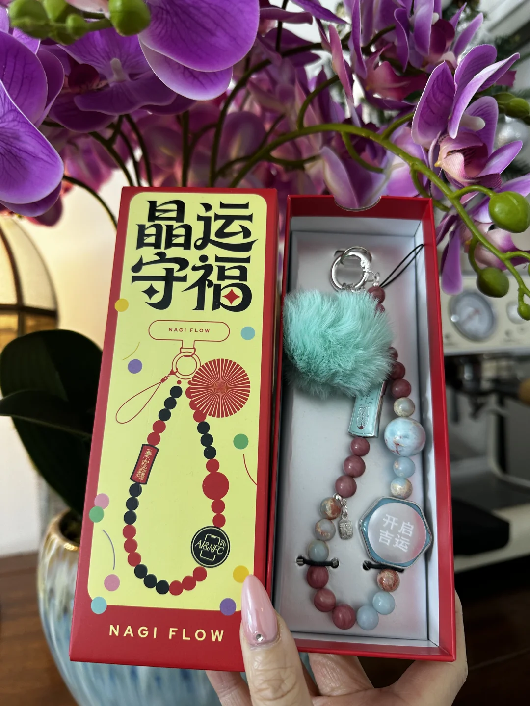 杭州的春天来得早,我新请的盲盒也到了!🌸 拆到这条纳吉手机链盲盒的时候,直接被颜值戳中!它一共有7个颜色!每一条都很美~ 马卡龙配色的珠子搭配软乎乎的毛球,挂在手机上不仅是配饰,更是我的“随身🍀”。还可以链接手机NFC,get每日生活小tips 愿我的生活像这抹紫色蝴蝶兰,热烈又灿烂。