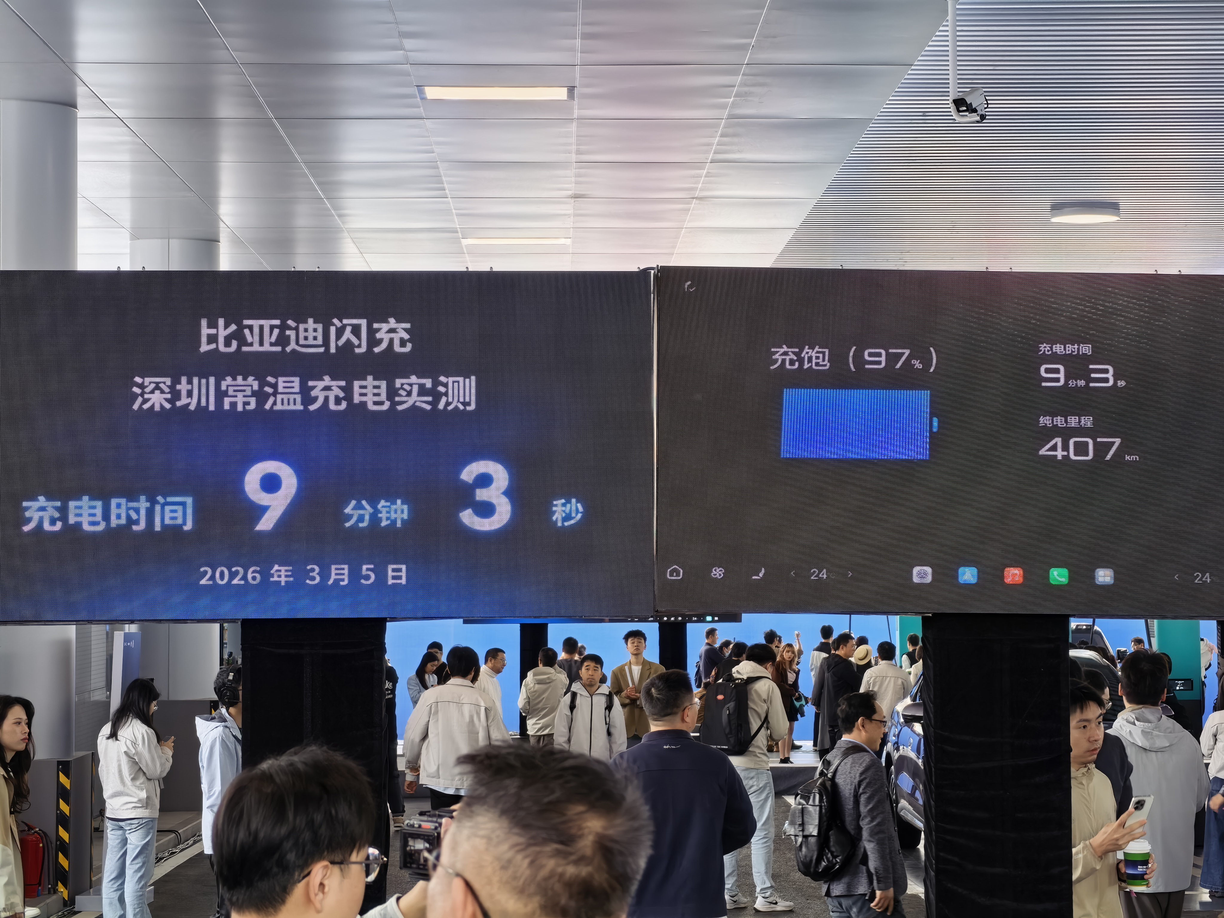 同时,今天在深圳比亚迪闪充实测现场,有幸亲眼见证了什么叫“充电比加油还爽”!