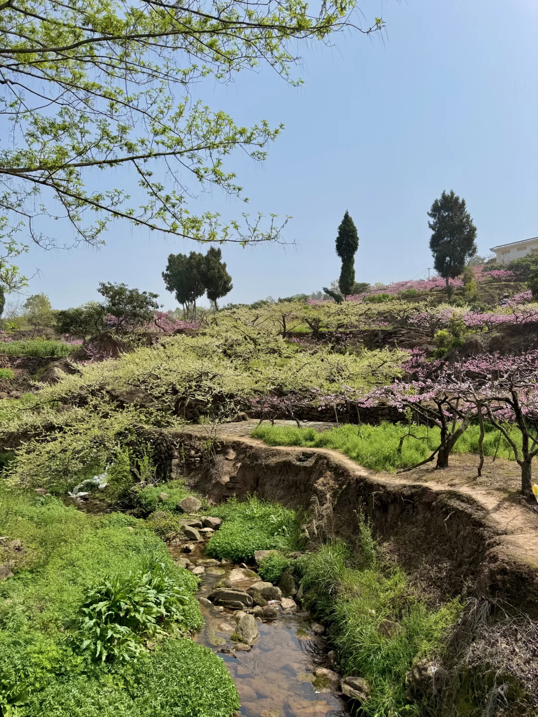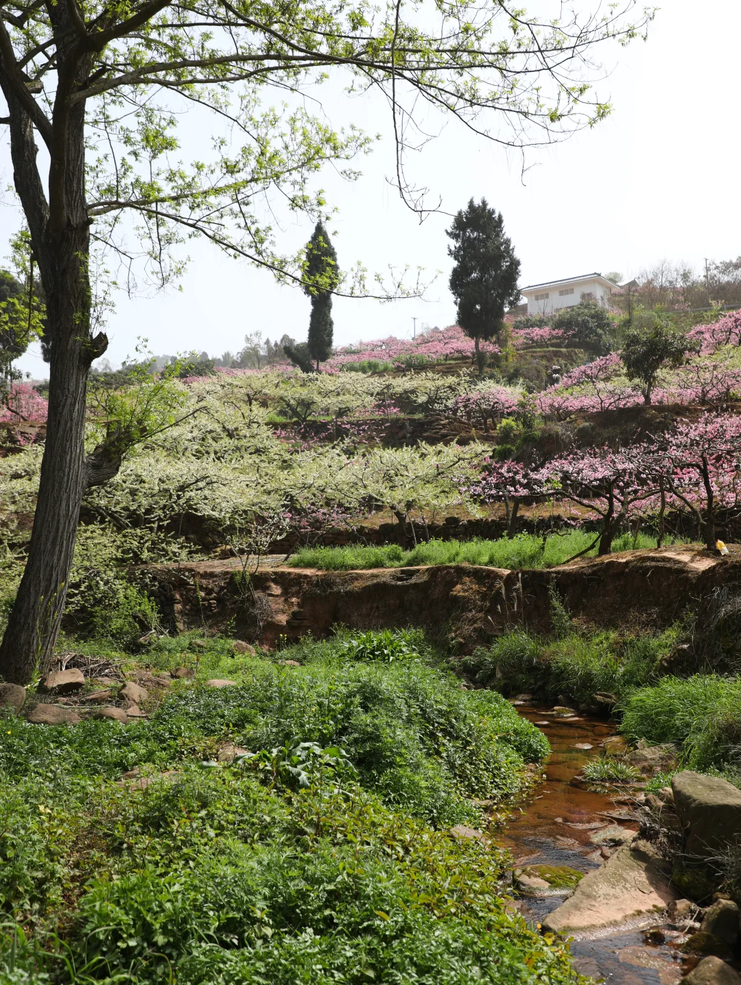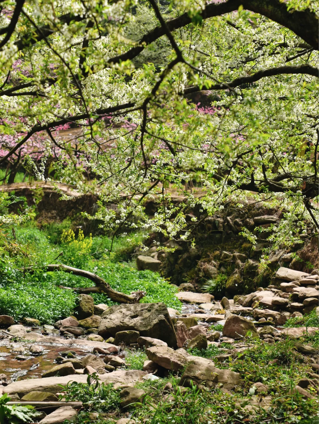 龙泉山这片李花桃花➕小溪秘境,拍照的话需要抓紧这两天,风吹就容易掉花瓣了哦~ 树子底下可以野餐,请爱护好环境和花草树木🌲不要乱扔垃圾🚯 📍直接导航龙泉汤坝梁子(不好找,具体路标可以看图4) 🚇公交可达路线: 地铁2号线龙泉驿地铁B口转公交L008路到美满路站,再步行约1km左右即🉑 这里也是钟家山步道4号栈道附近 赏完这边的话就可以周边徒徒步,或者晚点在山顶等一场日落🌇