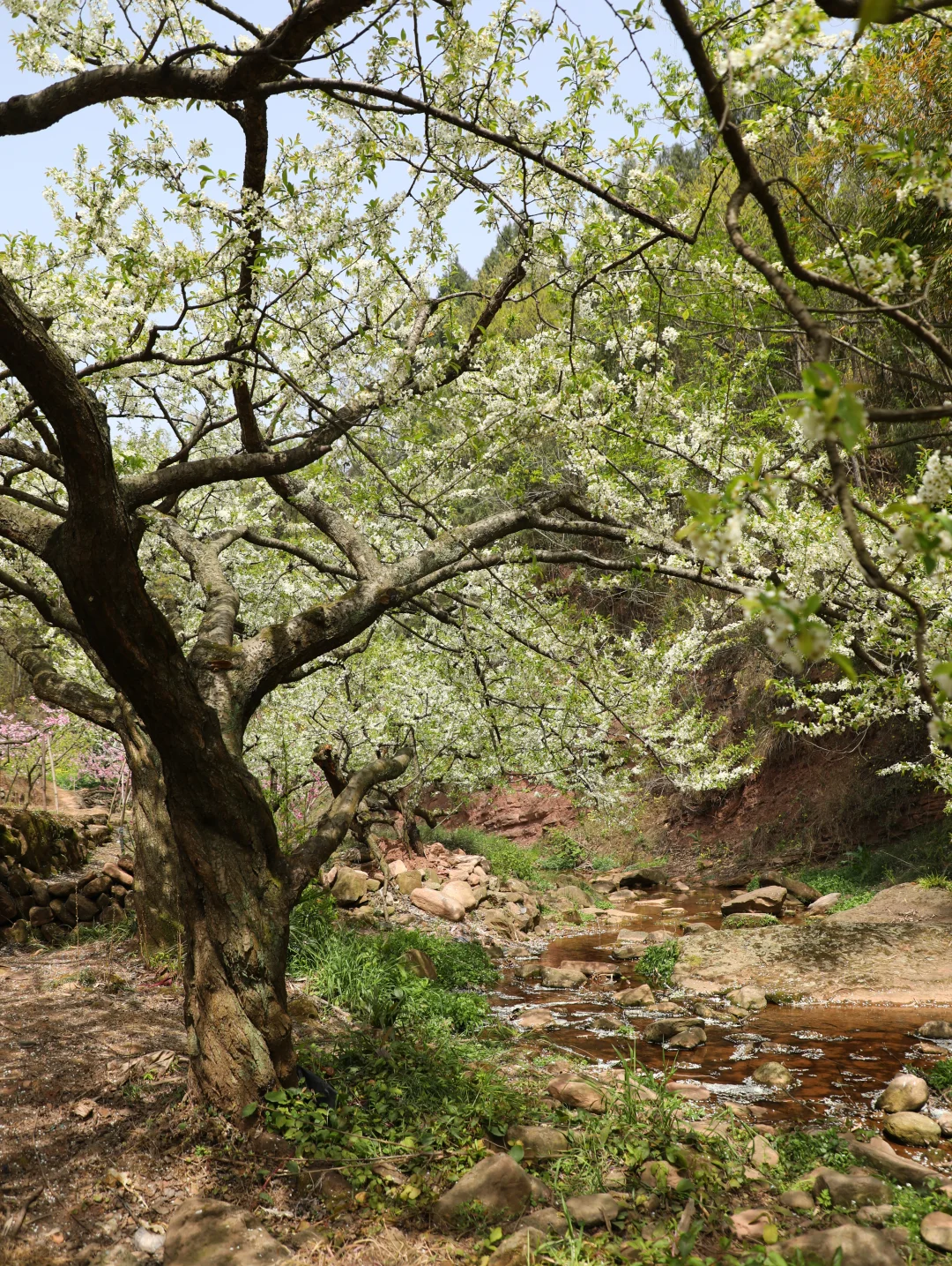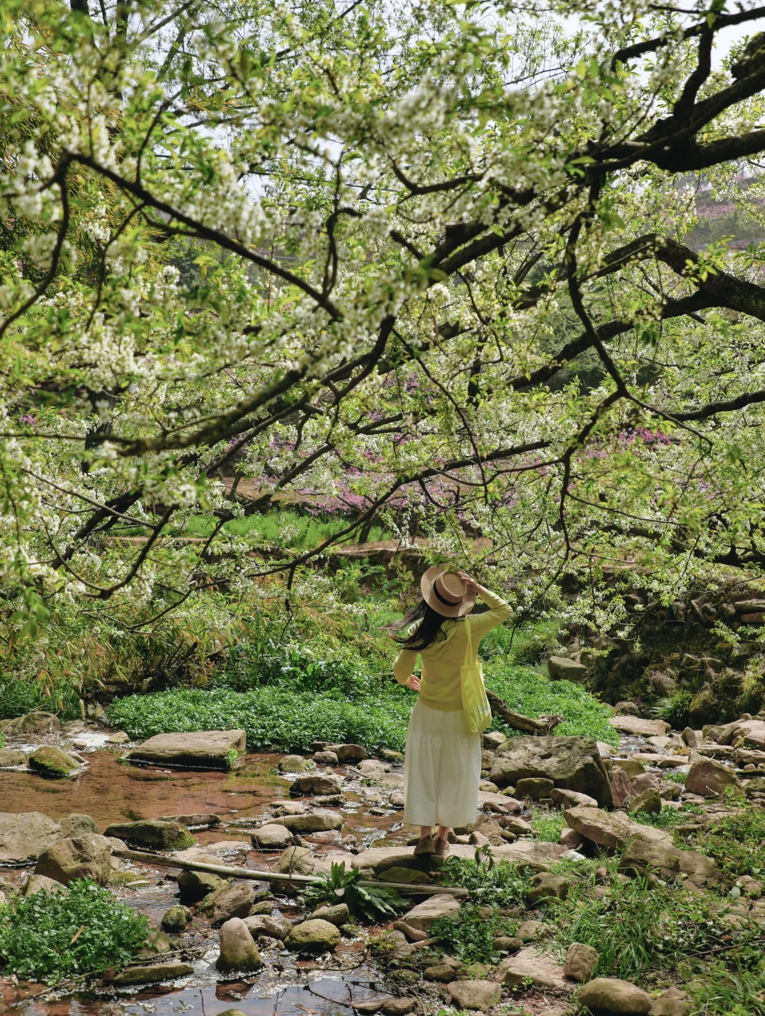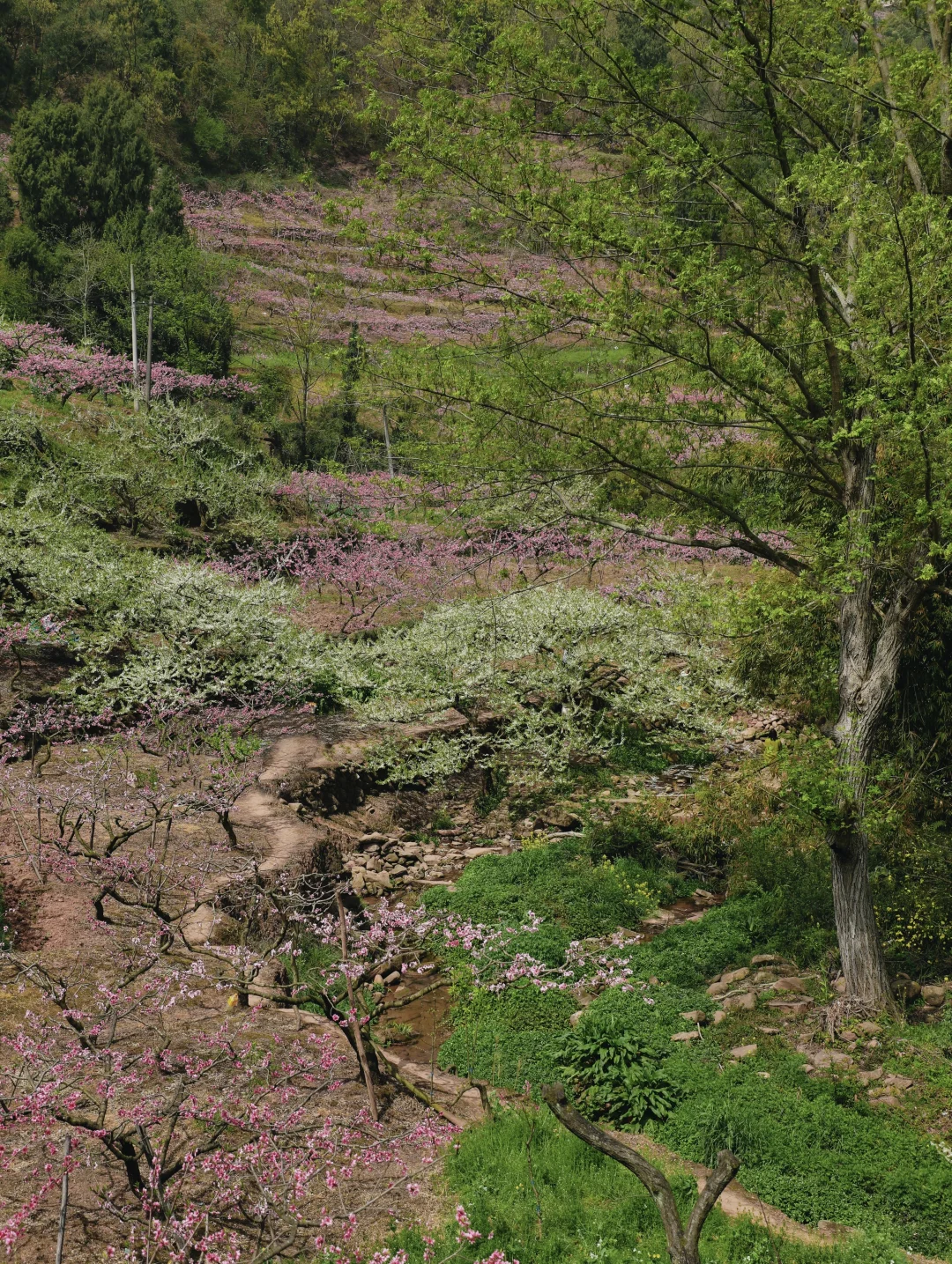 龙泉山这片李花桃花➕小溪秘境,拍照的话需要抓紧这两天,风吹就容易掉花瓣了哦~ 树子底下可以野餐,请爱护好环境和花草树木🌲不要乱扔垃圾🚯 📍直接导航龙泉汤坝梁子(不好找,具体路标可以看图4) 🚇公交可达路线: 地铁2号线龙泉驿地铁B口转公交L008路到美满路站,再步行约1km左右即🉑 这里也是钟家山步道4号栈道附近 赏完这边的话就可以周边徒徒步,或者晚点在山顶等一场日落🌇