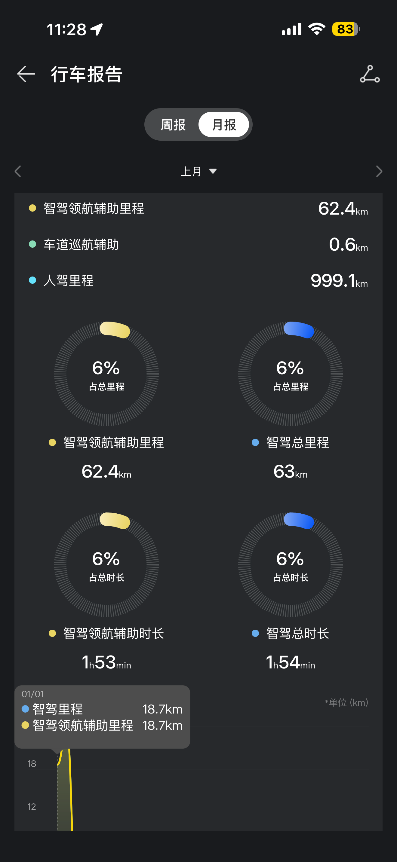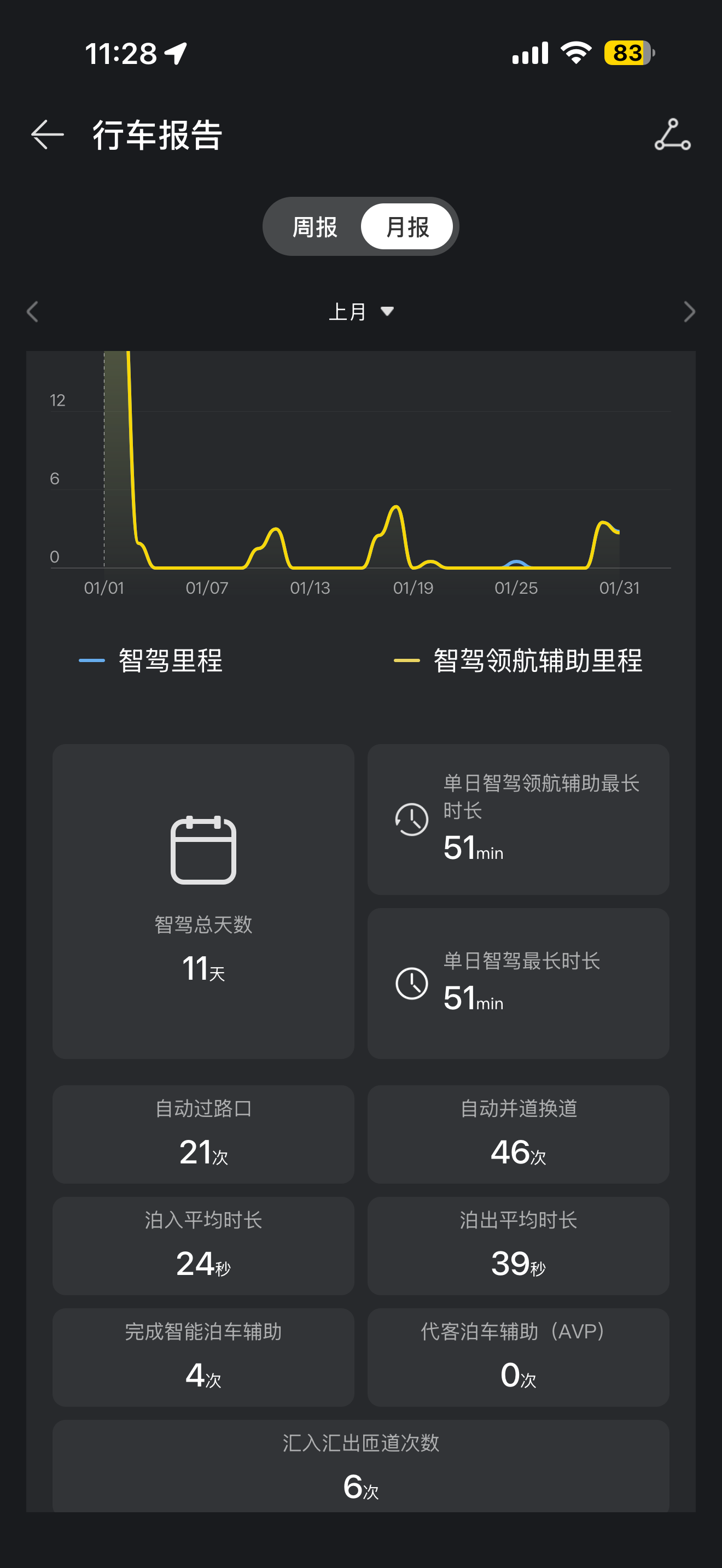 • 智驾功能我用得不算多,上个月只开了63公里智驾里程,主要是北京市区路况复杂,还是自己开着放心。