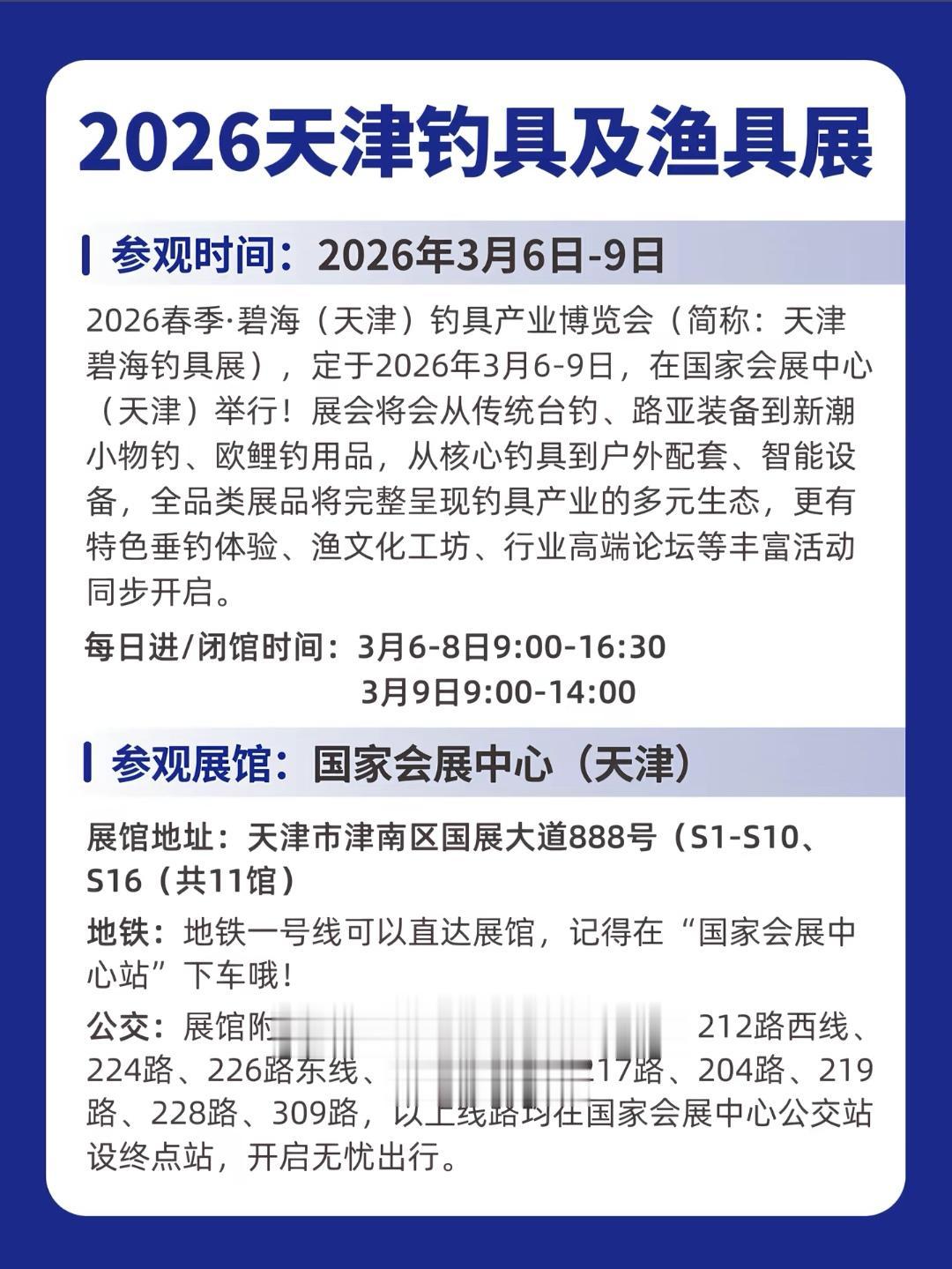 2026天津渔具展。没记错的话,应该是北方最大的渔具展,印象里各大品牌都会去,只是不知道今年怎么样。 明天(03.06)开展,钓友们按照采购商的流程去参展应该,周边感兴趣的朋友可以去转转。 按照以往的经验,展会最后一天很多品牌为了回程少带点东西,会清仓处理一些展品。展会外面的标摊也会有零售,没准就能捡个漏。