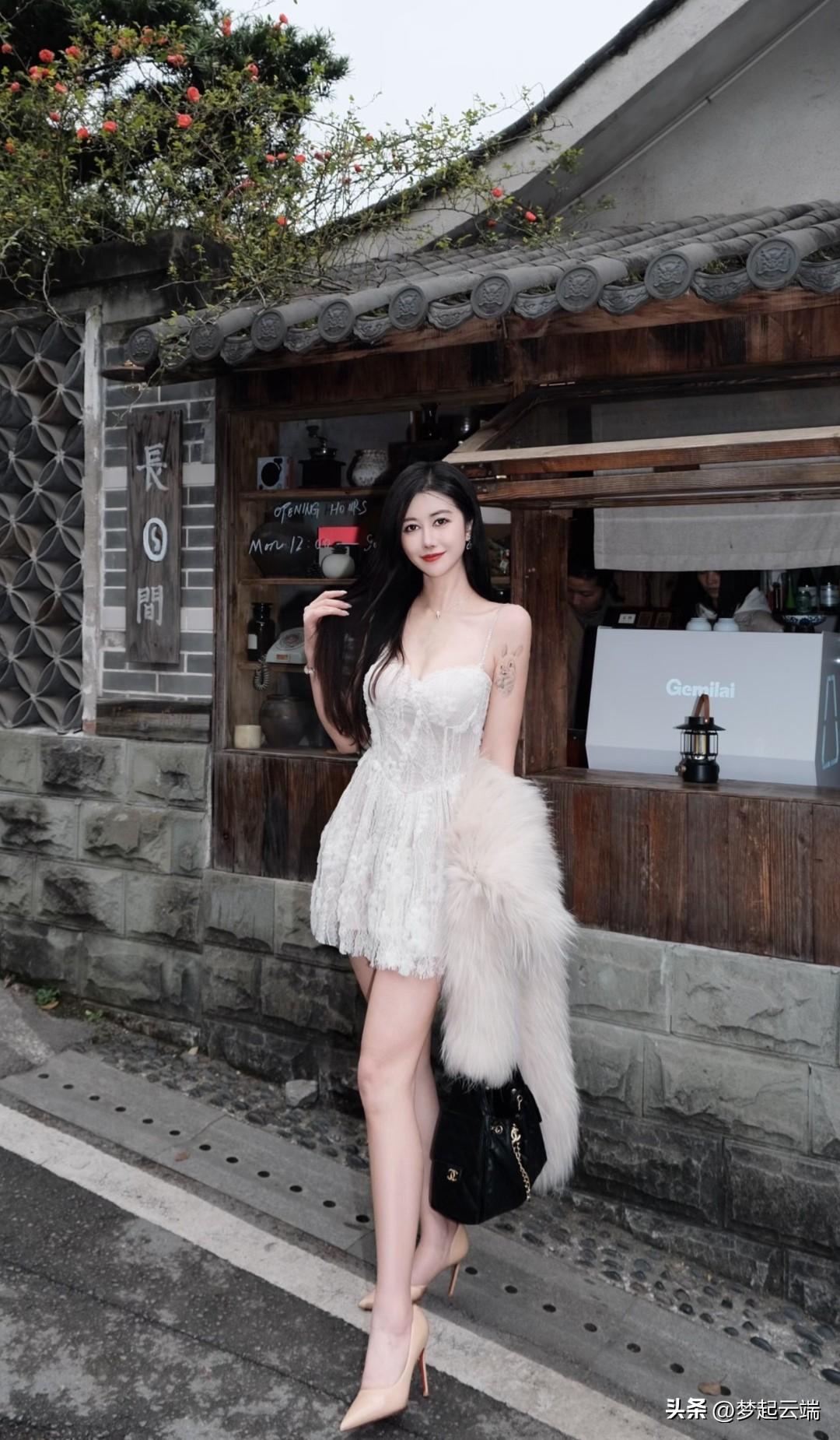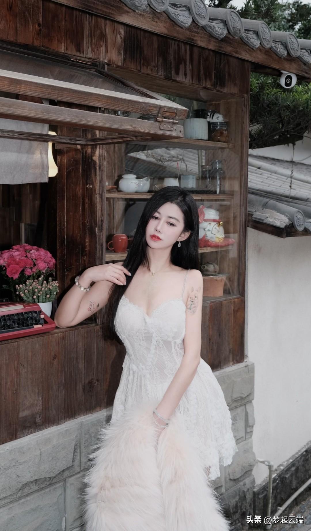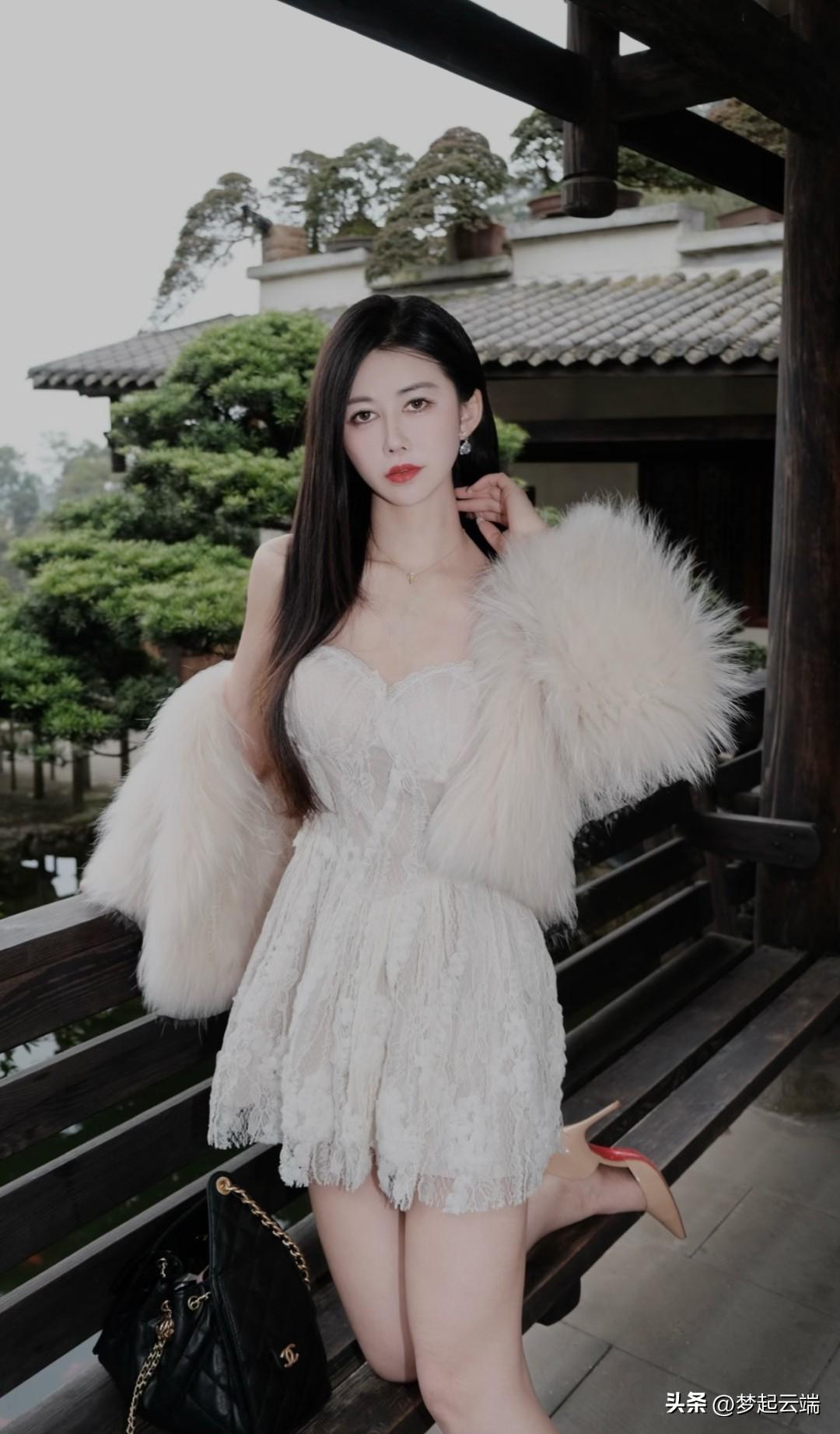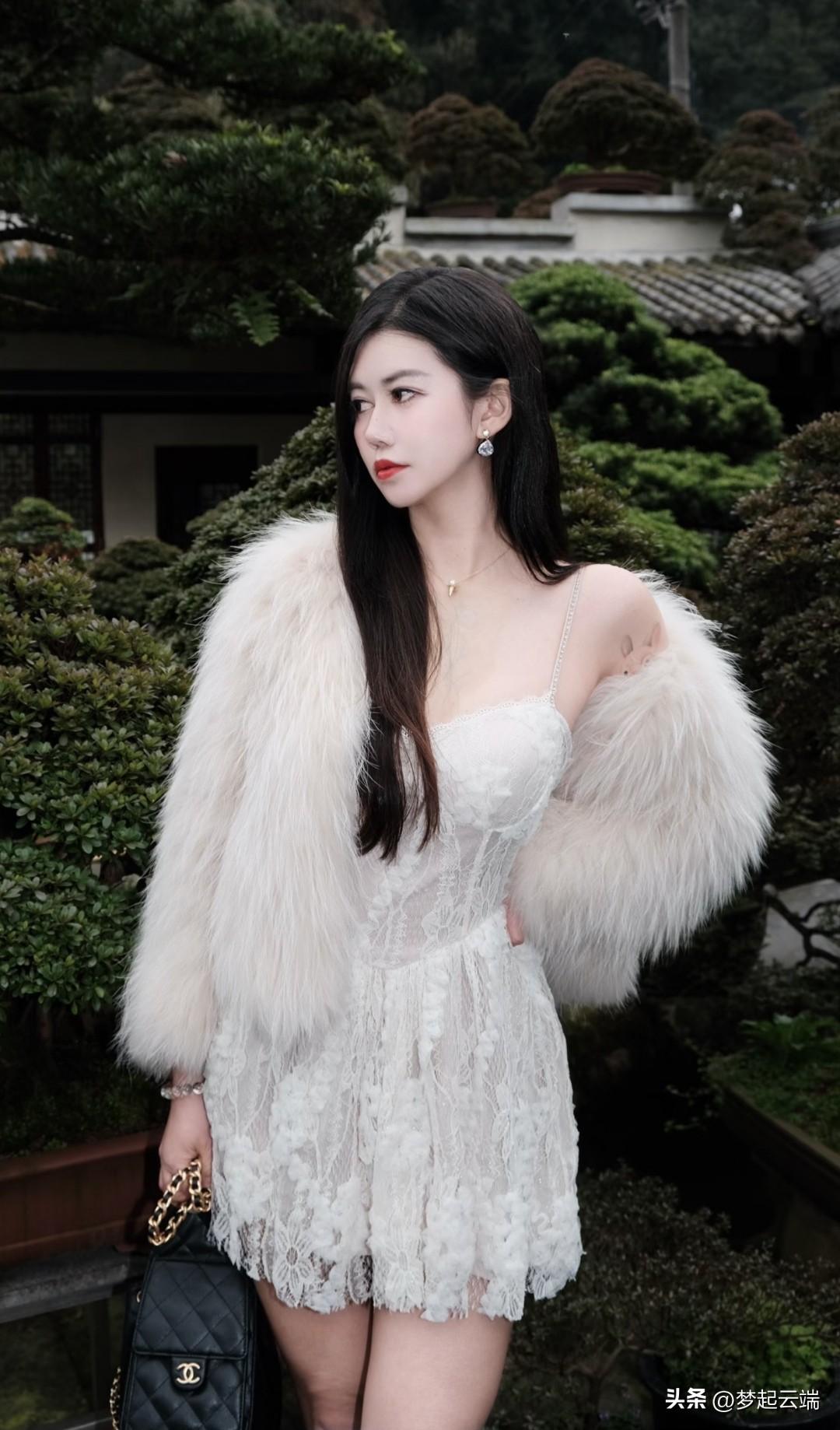 优雅少女,白裙飘飘,仿若画中人。