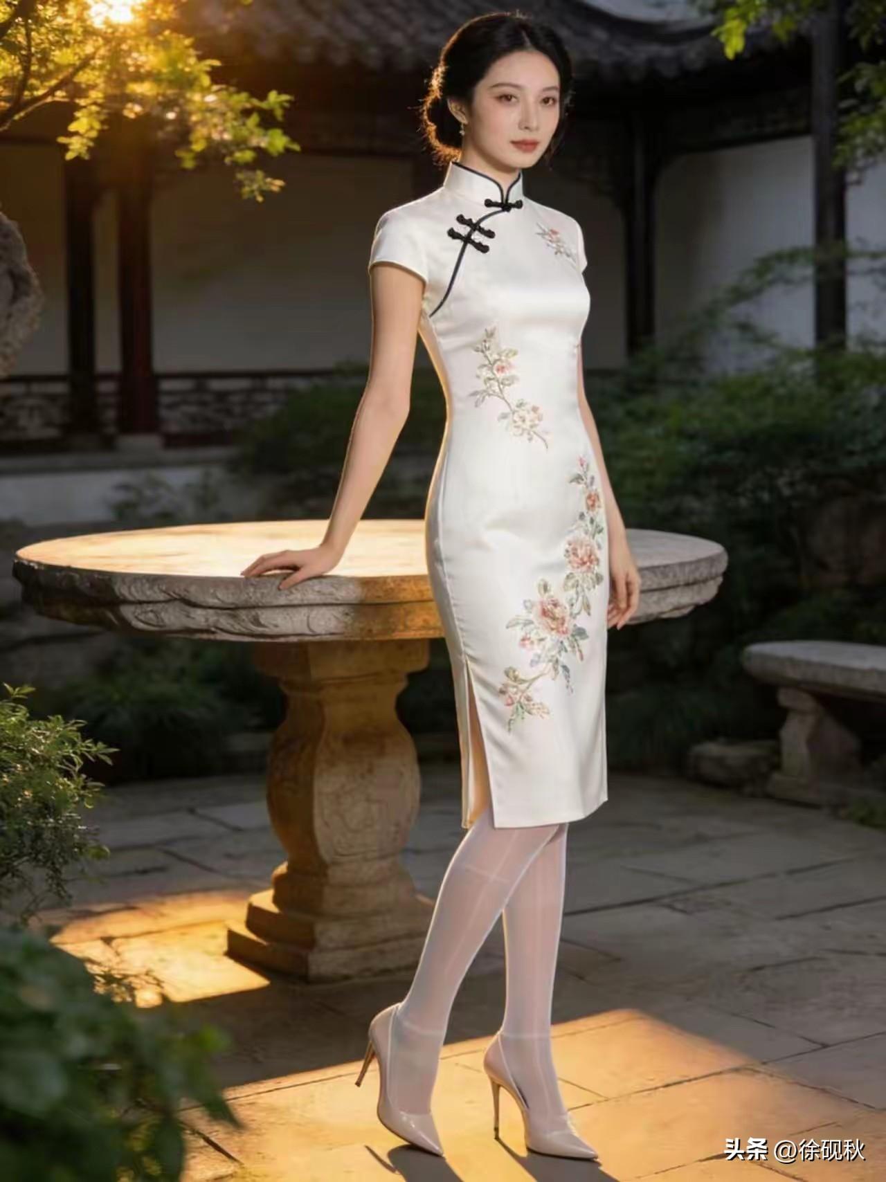 旗袍雅韵。桂花风情。 素衣绣桂,暗香浮动, 一颦一笑,百媚千娇。 江南温婉,诗意