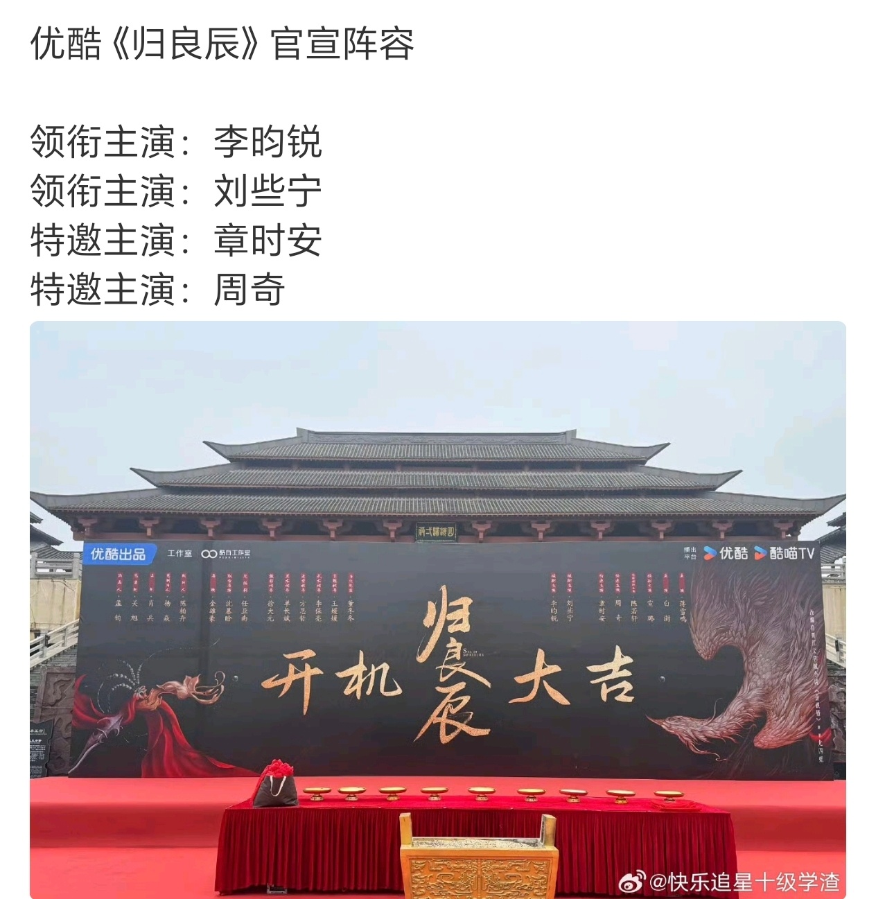 李昀锐红了以后的第二部一番男主剧《归良辰》今日开机