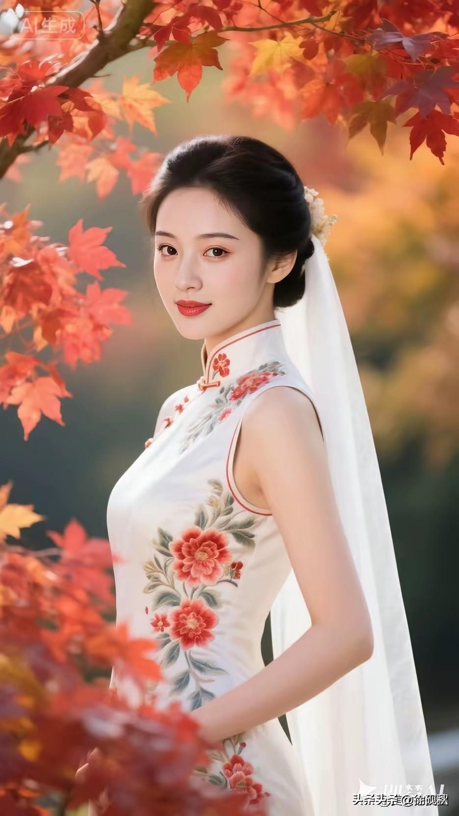 旗袍雅韵。桂花风情。 素衣绣桂,暗香浮动, 一颦一笑,百媚千娇。 江南温婉,诗意