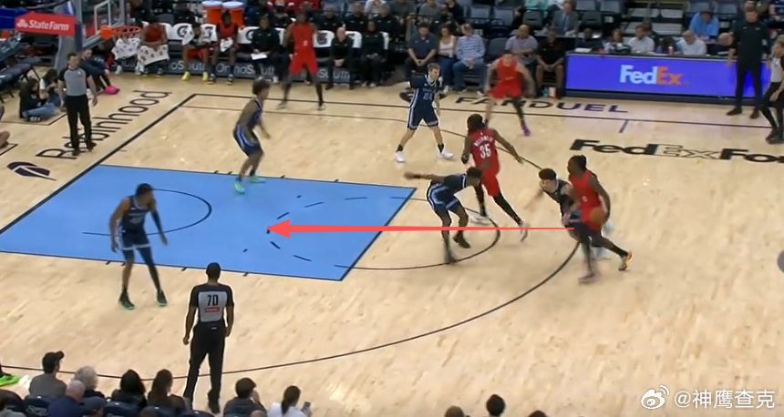 16 17 18霍乐迪上线持球借助卡马拉扎实的掩护换走威尔斯、要到吕佩尔换防,随即使用in&out误导迅速衔接胯下变向启动右路突破直杀篮下,突破行进间对抗碾着防守人杀入篮下的同时起慢三步,终结前一个虚晃小停顿直接点飞防守人,随即拧着身子放篮终结稳稳命中,打成2+1。
