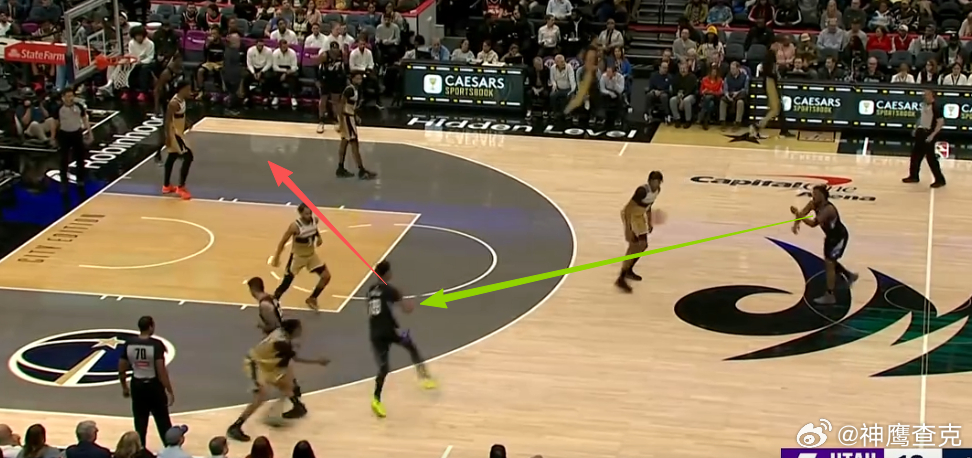 56789 10爵士抓早期进攻阶段直接开展传切战术配合,克利尔持球过半场后,贝利立即无球起手借助康查尔“Pin Down”向篮下“Curl”,“Curl”的同时接克利尔上球、要到防守弱环杨的错位,接球后顺势启动突破直杀篮下,突破行进间躲过防守球员回收刷卡,一路碾着杨杀入篮下后上篮稳稳命中。