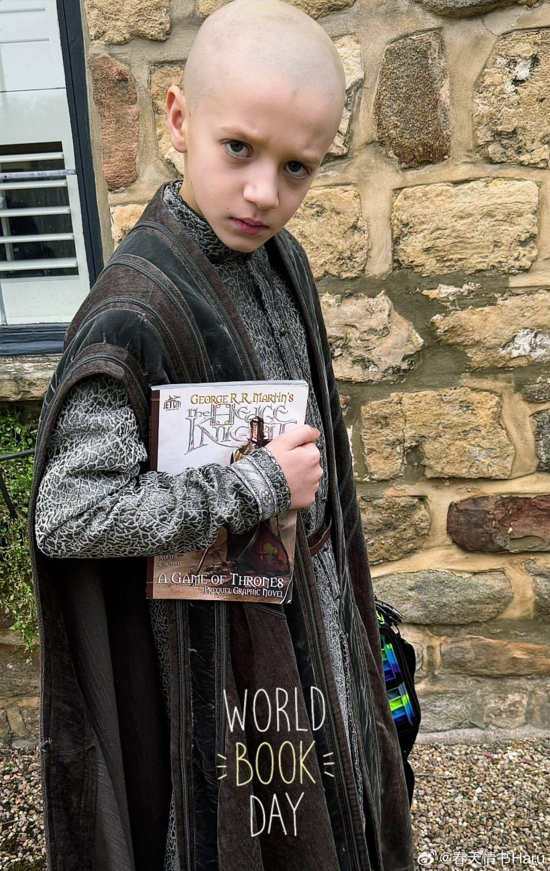 《七王国的骑士中》扮演伊戈的小演员德克斯特·索尔·安塞尔在学校的世界读书日活动中,装扮成了伊戈去上学