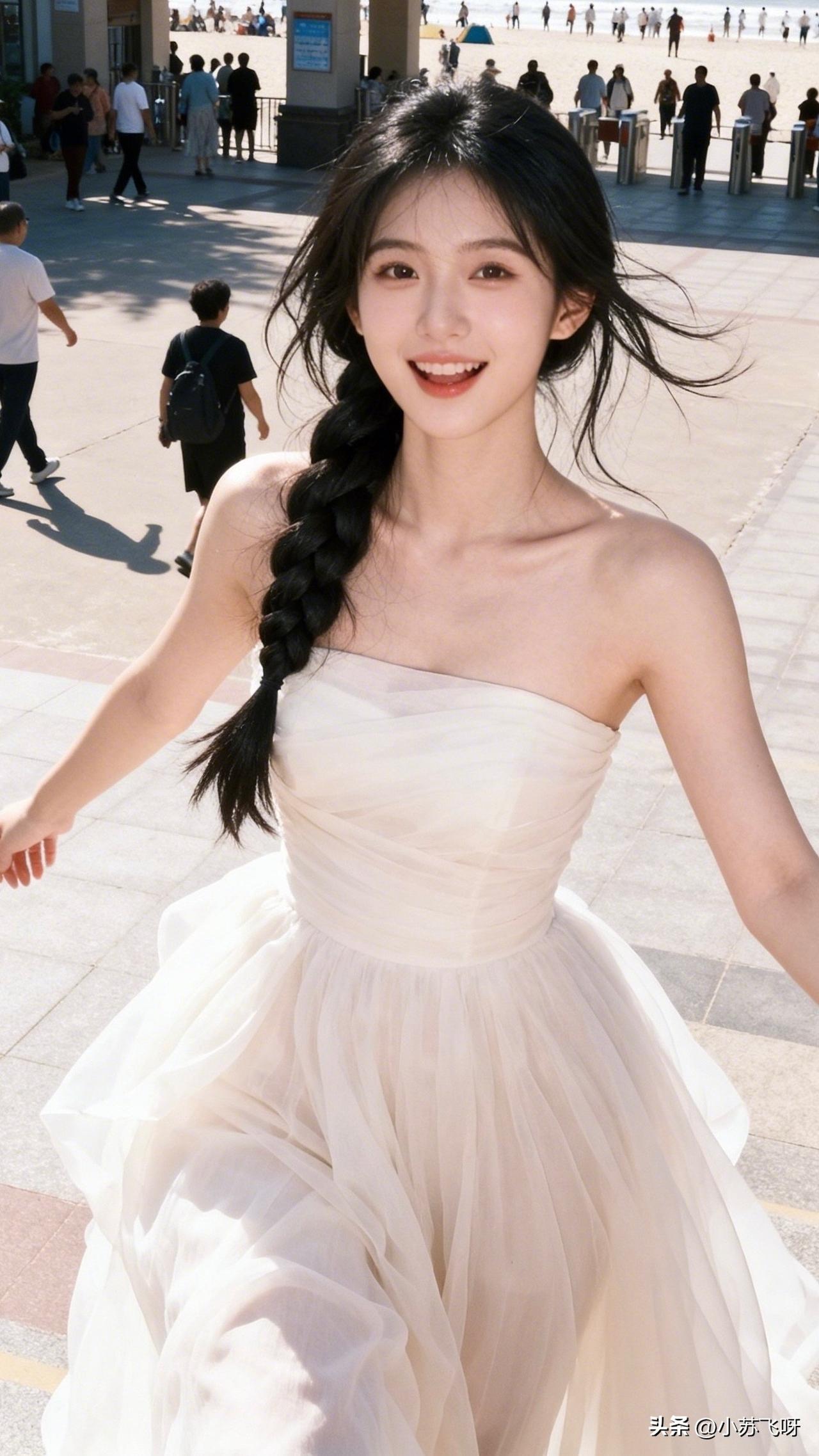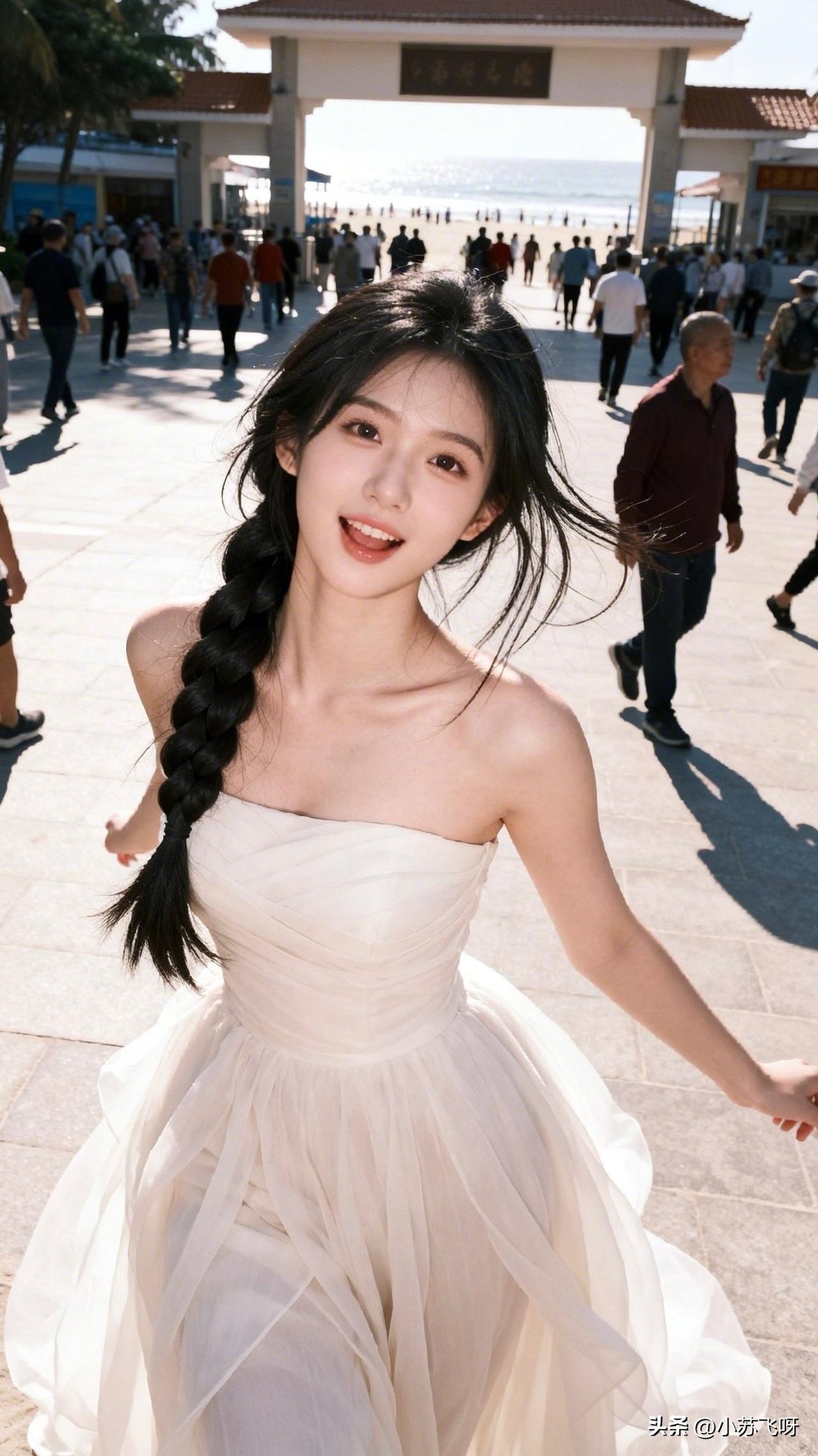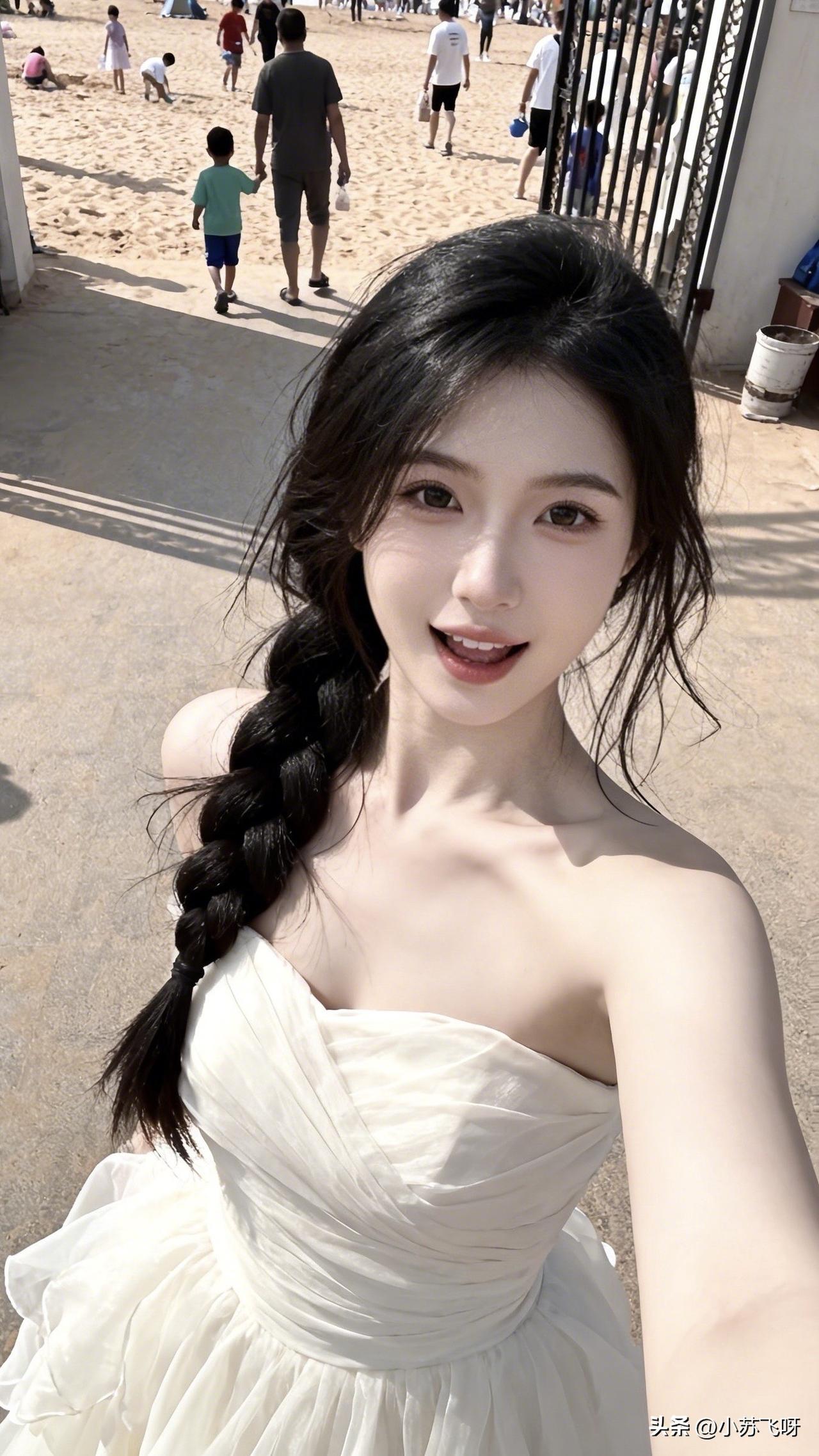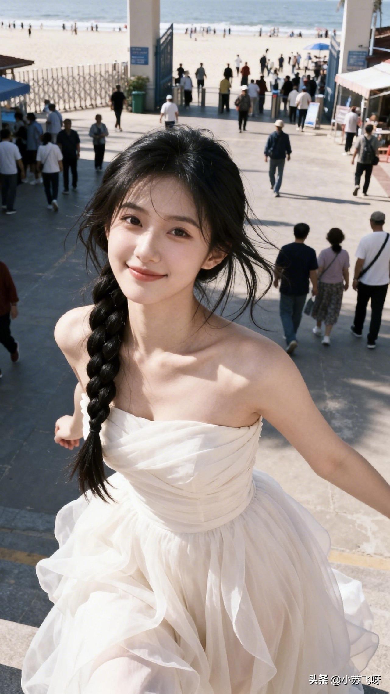 :来咯~来咯:“俏女风姿映海天,红唇浅笑梦间甜;身姿曼妙惊鸥鹭,流连忘返意绵绵。